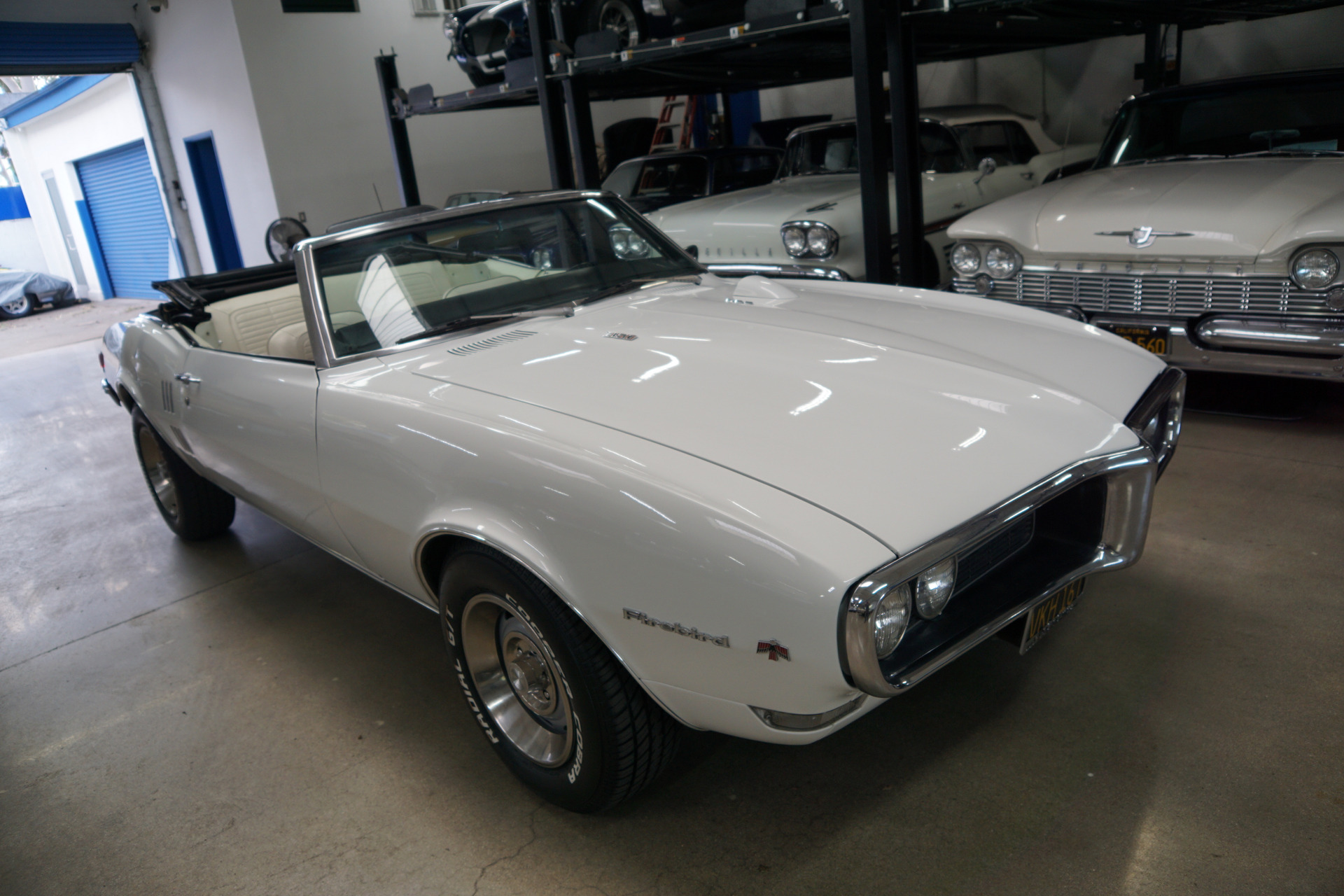 This particular example is an original black plate California car with no signs of of any accidents or rust and which has been nicely repainted in this 'White' color paint matched to it's original 'Parchment' bucket seats interior with a Black soft top and matching carpets. The date correct 'YJ' code 350 V8 engine is extremely strong and responsive with excellent oil pressure and which sounds absolutely magnificent and throaty from its dual exhausts, the transmission shifts smoothly through the gears and the engine temperature always remains cool and the car has a spare wheel and jack in the trunk. This must be one of the nicest unrestored and daily driving survivors of a mostly all original California car and a very collectible 1968 year of the legendary Pontiac Firebird Convertible!