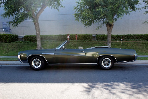 West Coast Classics are proud to present an excellent example of this 1969 Buick Le Sabre 350 CID 4BBL 280HP V8 Convertible in great daily driving condition with Turbo 400 automatic transmission, power steering, power brakes, power top & tilt wheel with dual 'Flow Master' exhausts and 'Torque Thrust D' American racing wheels & with the original factory wheels to be included with the car. This particular 1969 Buick Le Sabre Convertible is in very fine daily driver condition throughout. The car has an older repaint which is still in very good condition and its original 'Buckskin' vinyl interior has been reupholstered and is therefore as new but otherwise the interior is mostly all original throughout and please note that there is a crack in the original dashboard.