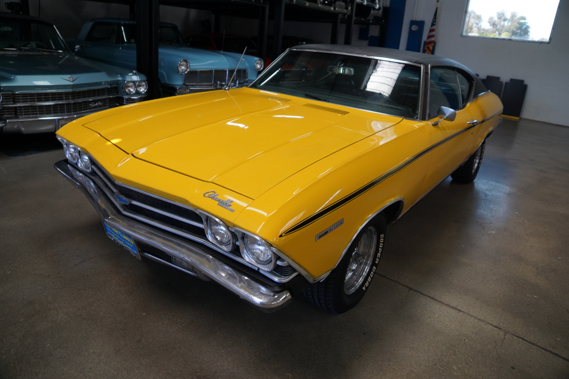West Coast Classics are happy to present a great daily driving example of this 1969 Chevrolet Chevelle 2 Door Malibu Hardtop with a 350 V8 engine. The car has been repainted in a striking Yellow color and has a Black Vinyl roof hardtop and Black interior.
