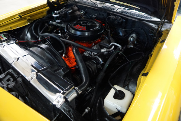 The car has a new repaint in Yellow and which we would describe as of average quality. The interior should also be considered of average quality. The car has a 350 V8 engine and a GM 10 bolt rear end. The front pads and rear shoes are all in good shape and the car stops nicely. The suspension is all stock with factory coil springs front and rear. Front and rear shocks were replaced by previous owner. Rear differential has been topped off. Trunk is clean with no rust. Both the body and the undercarriage show no evidence of any previous rust or accidents.
