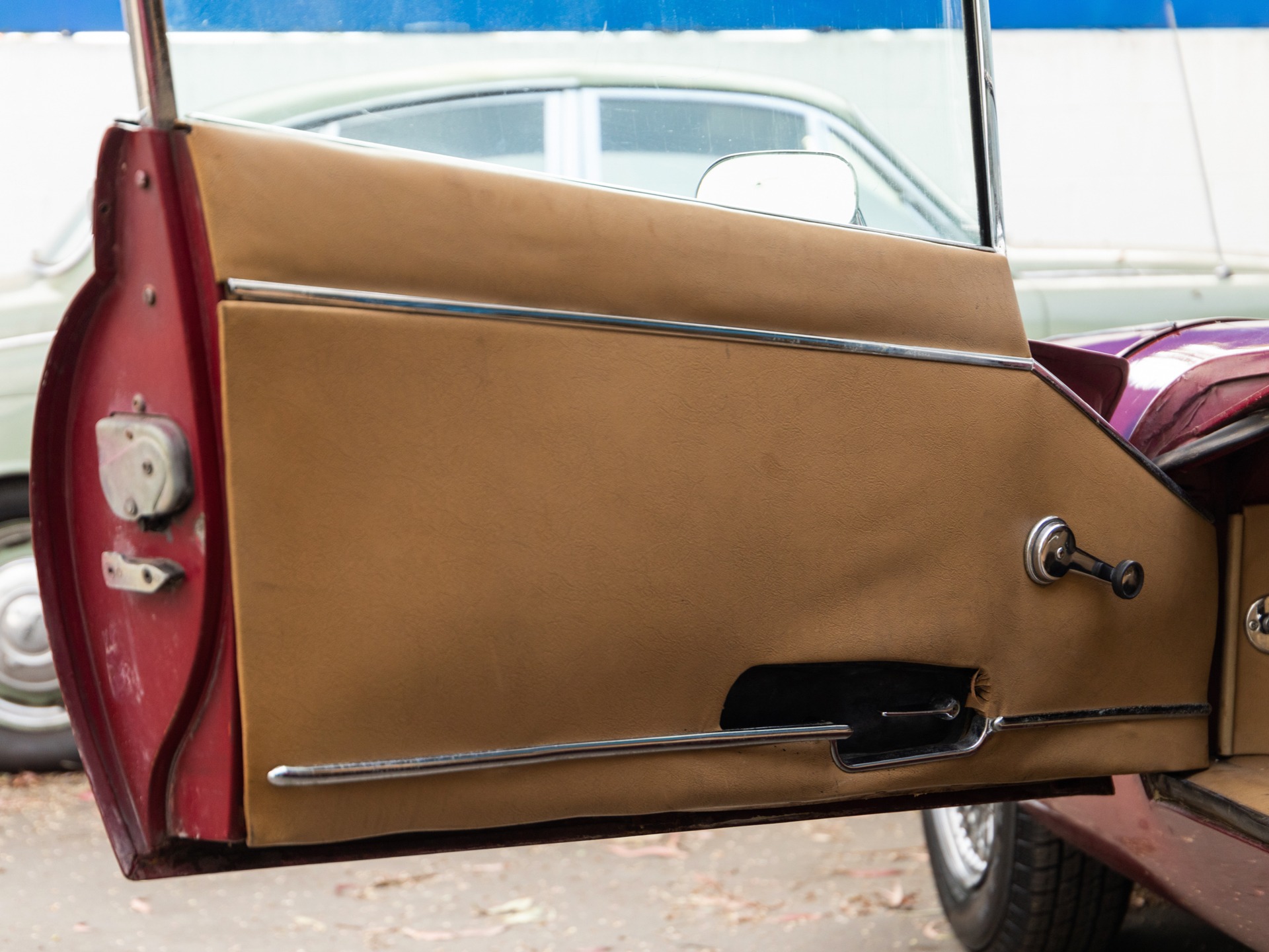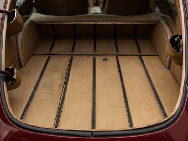 The car was reportedly always been garaged in California in recent years with the floor boards, trunk areas and all the typical rust-prone areas completely solid and rust-free and the car has had no accidents and has a very straight body. It's original 'Regency Red' color paint is showing its age as is the interior and the car would benefit from a cosmetic restoration. The car runs and drives very well with its original matching #'s 4.2L 6 cylinder engine and automatic transmission and the car has all of it's original chrome wire wheels and it's original spare wheel and tools are located in the trunk.