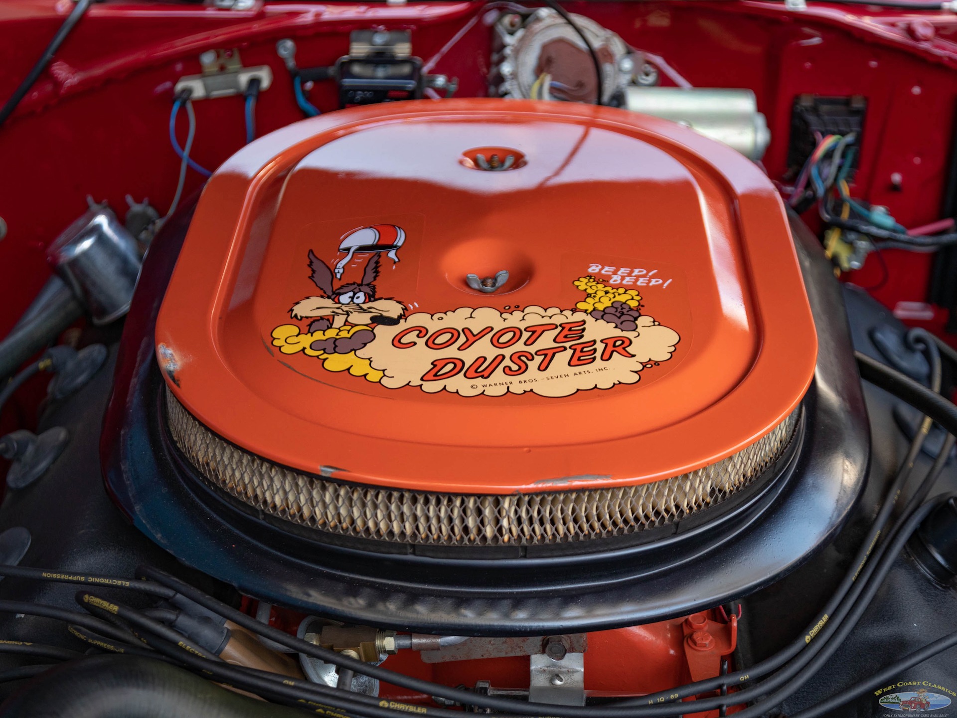 This particular car is the recipient of a full restoration with no expense spared and still boasts a date correct 426/425HP V8 Hemi engine with Hemi cast iron manifolds matched to a 4 speed manual transmission and Dana 60 rear end. The car looks very impressive in it's original 'Scorch Red' color and 'Pewter' interior.