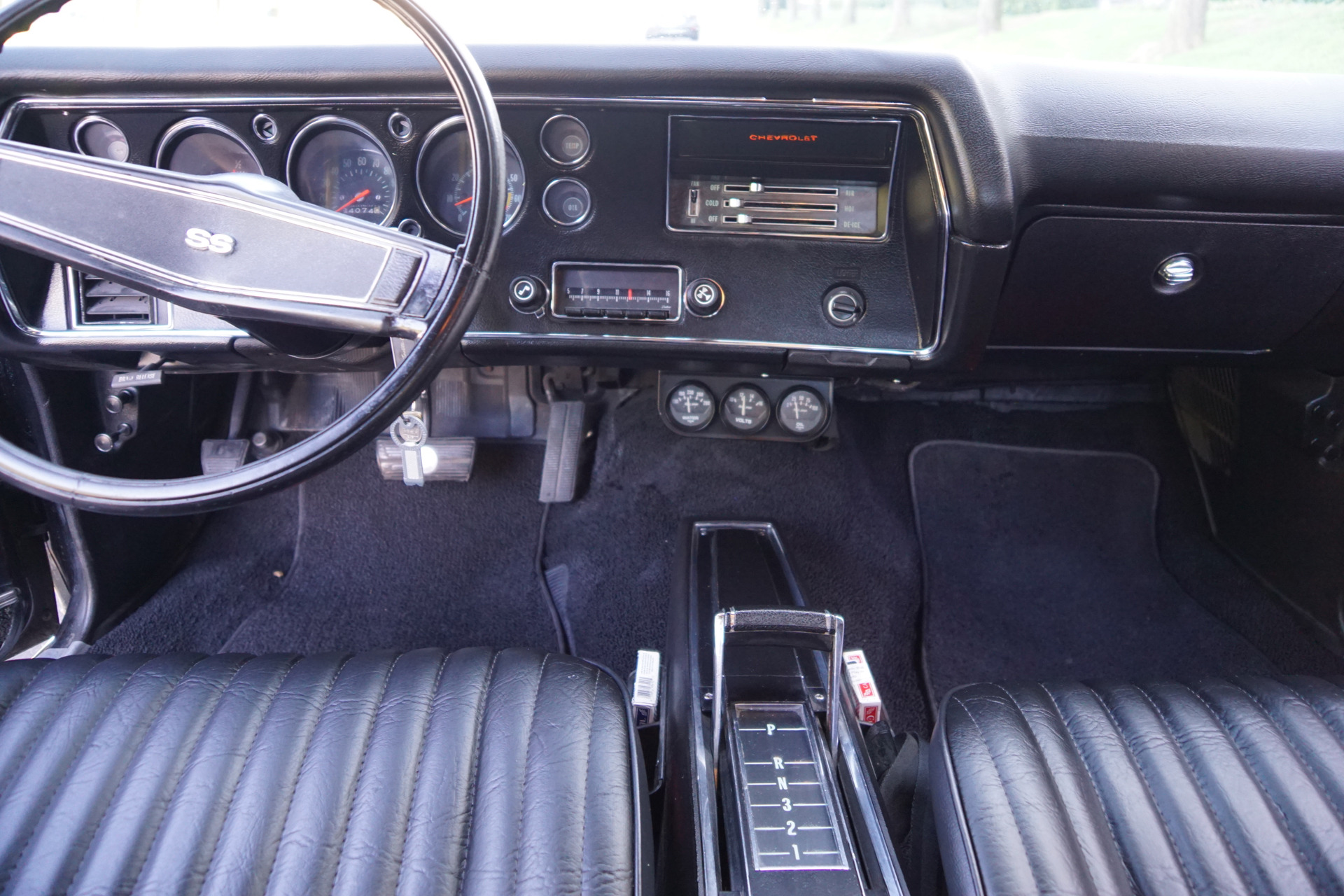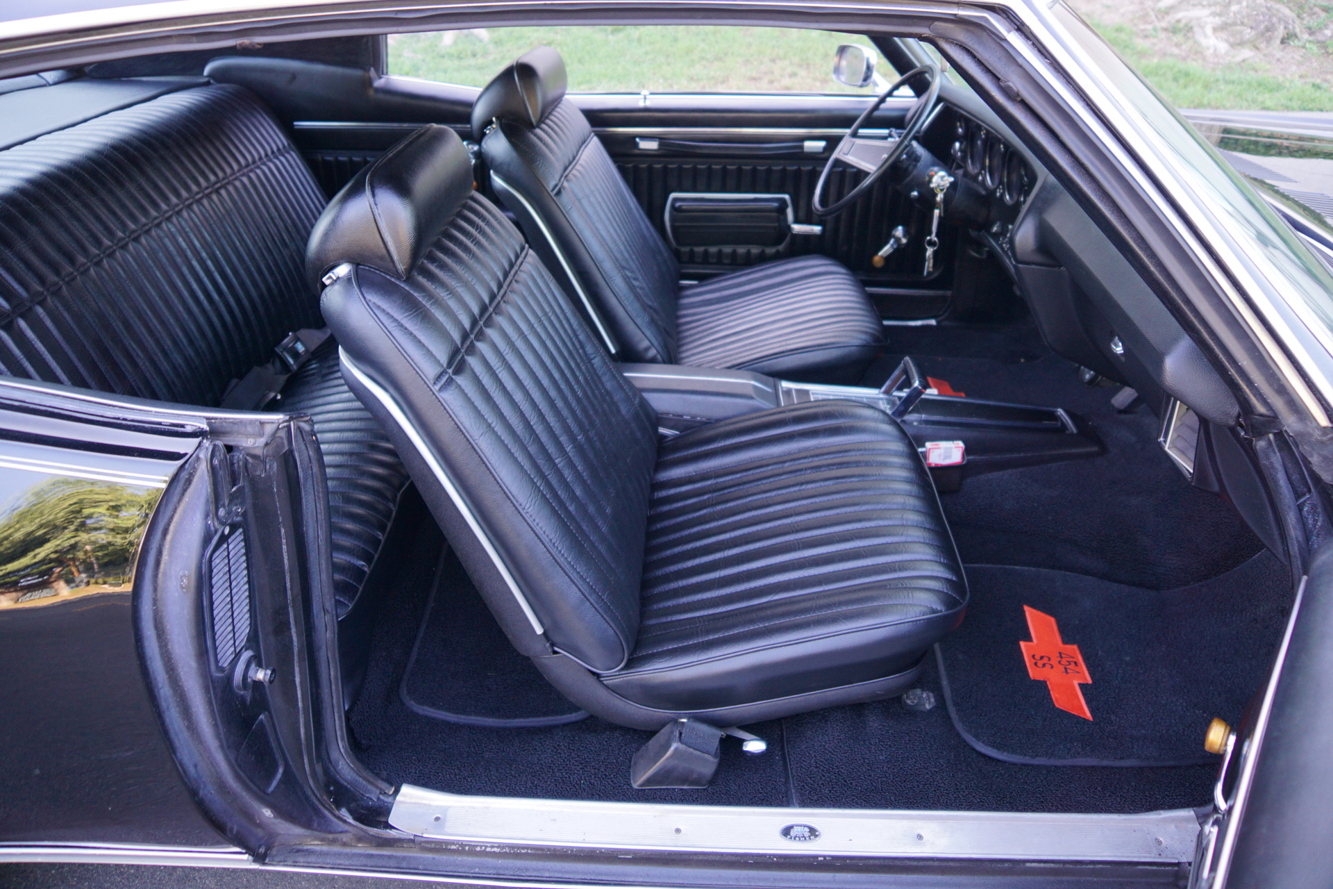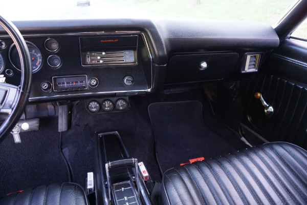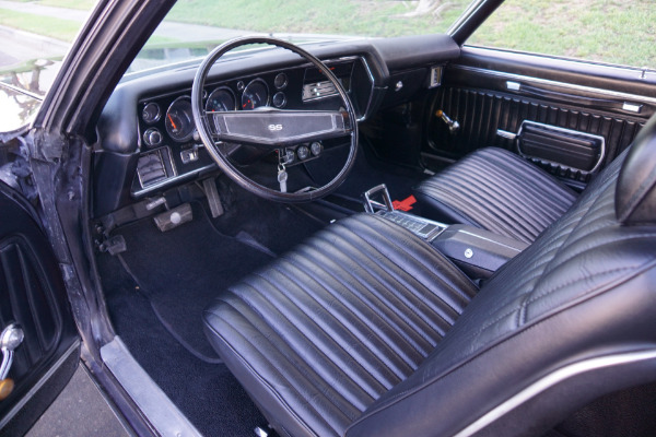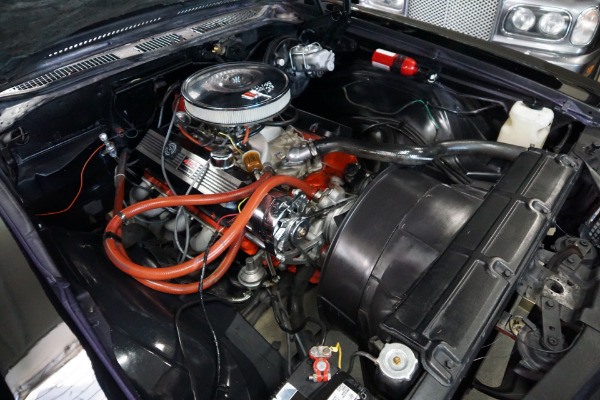 This particular example has most likely been cloned to resemble an SS454 or is an original SS that is now missing its 12 bolt rear end, rear sway bars and original engine and transmission! In any case we do not have any documentation in the forms of build sheets or Portecto-plate or window sticker etc. It now has a later 454 V8 engine & automatic transmission from the 1980's and a 10 bolt rear end. It should be considered as a daily driver example with some flaws cosmetically and otherwise and quite simply is a car to be enjoyed as is. It has been repainted in 'Black' and has a matching 'Black' interior and has options including power front disc brakes, adjustable tilt steering wheel, side view mirror, tinted windows, and bucket seats with front seat console with floor shifter.