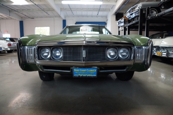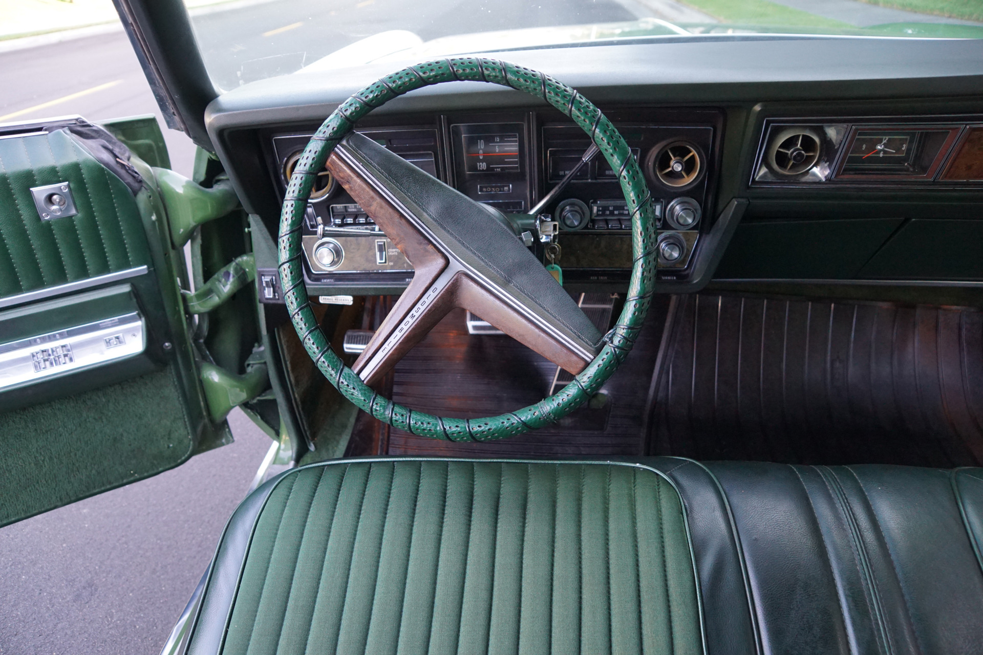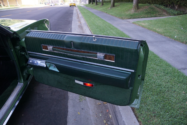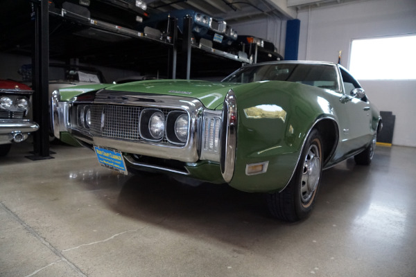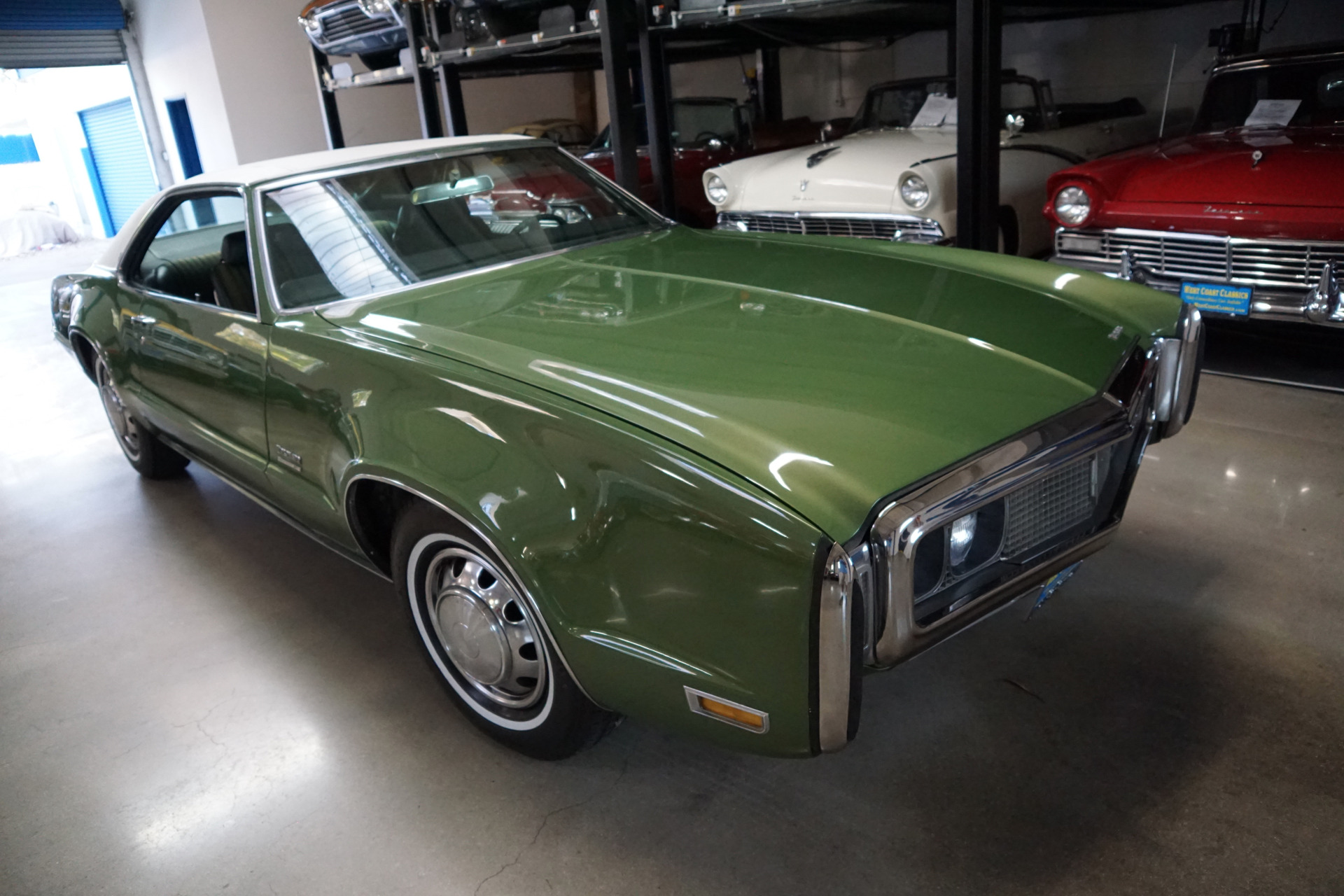 Finished in it's original factory 'Ming Jade Green Metallic' color paint (Paint Code 46) with a matching 'Green Cloth & Vinyl Strato Bench Seat' interior, a factory ordered 'White' vinyl top and with it's original wheels and hubcaps. In 1969 the Toronado Custom interiors were a popular option, providing amenities the standard interior didn't offer, such as full-length door armrests with built-in provisions for the optional power windows and door locks controls. The full width Strato bench seat with center fold-down armrest was also part of the Custom interior package, and was becoming the standard for luxury car seating in 1969.