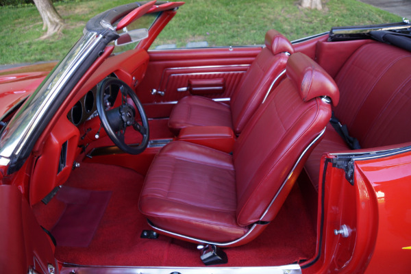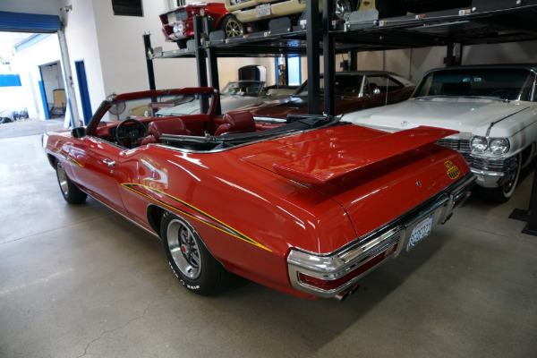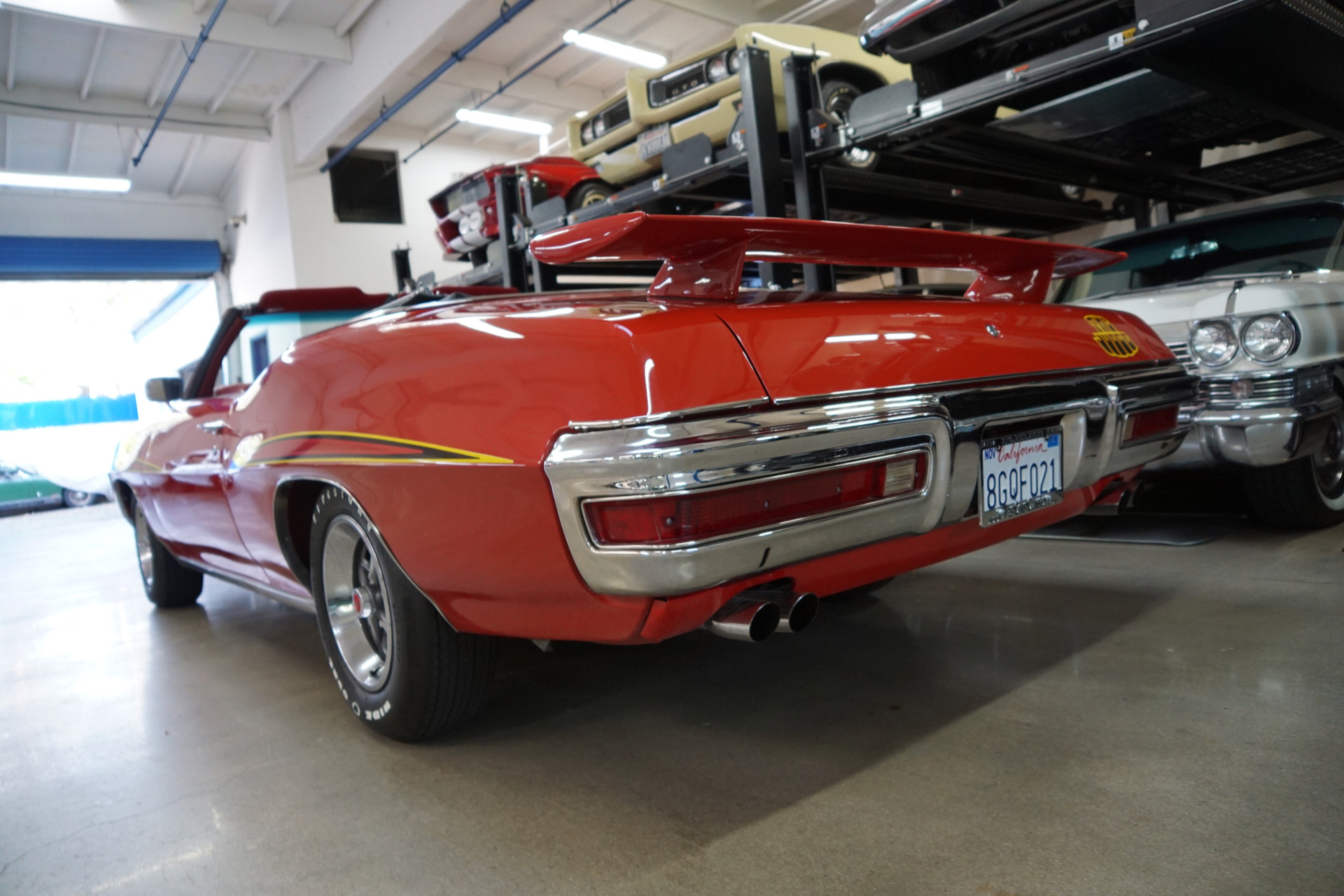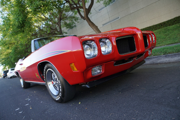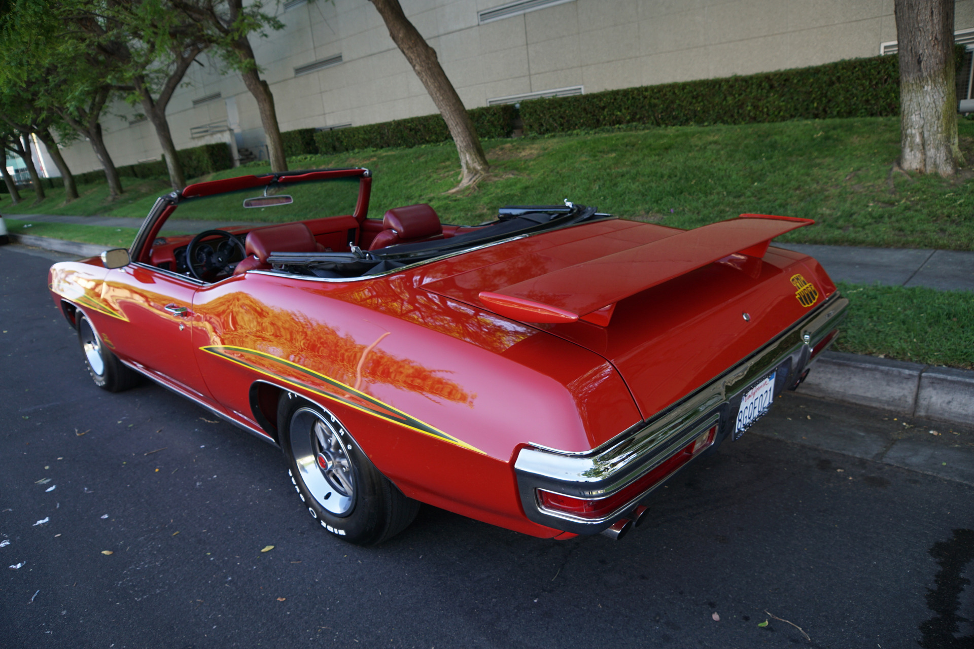 The car was born a 1970 Pontiac Le Mans Sports Convertible and was recently fully frame off restored as a 'GTO Judge' tribute with great attention to detail and with no expense spared. There are no signs that the car has had any major accidents of any kind and the car looks extremely impressive in it's 'Carousel Red' color paint with a matching 'Red' interior and the car has all the correct 'Judge' logos etc and the dashboard, the soft top and headliner, the carpets and all the seats are in absolutely exceptional condition throughout and the spare wheel with it's jack is in the trunk.
