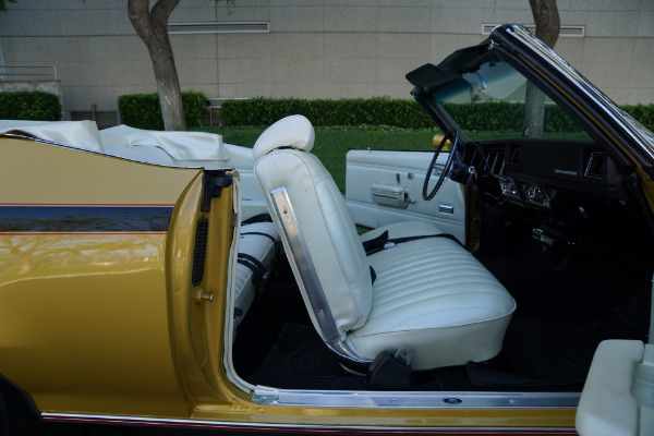 As demonstrator models, these Stage 1 convertibles were usually built with virtually every conceivable option available to show off to Buick's best prospective customers and all were visually set apart from their contemporaries with the all new for 1971 'Cortez Gold' color paint with 'Pearl White' on Black interiors and with White convertible tops. In addition to the Stage 1 engine and 400 Turbo 3 speed automatic transmission, every Gran Sport Stage 1 'Zone Demo' convertible was amongst other options equipped with a 3.42:1 Positraction differential, F41 Heavy Duty suspension, power steering, power front disc brakes, power windows & power seats & N25 rear-bumper dual exhausts outlets. Externally the cars boasted G60 15" raised white letter tires & rally wheels, front & rear bumper guards and sport mirrors. The luxurious gentleman muscle cars had interiors that could boasted trappings to rival any luxury full size vehicle with air conditioning, cruise control, power windows & locks, a power front split bench seat with fold-down arm rest, custom front shoulder belts, convenience lighting, Rally gauges and tachometer, soft-ray tinted glass, Rally steering wheel with tilt column and an AM radio with an 8 track cassette player.