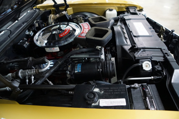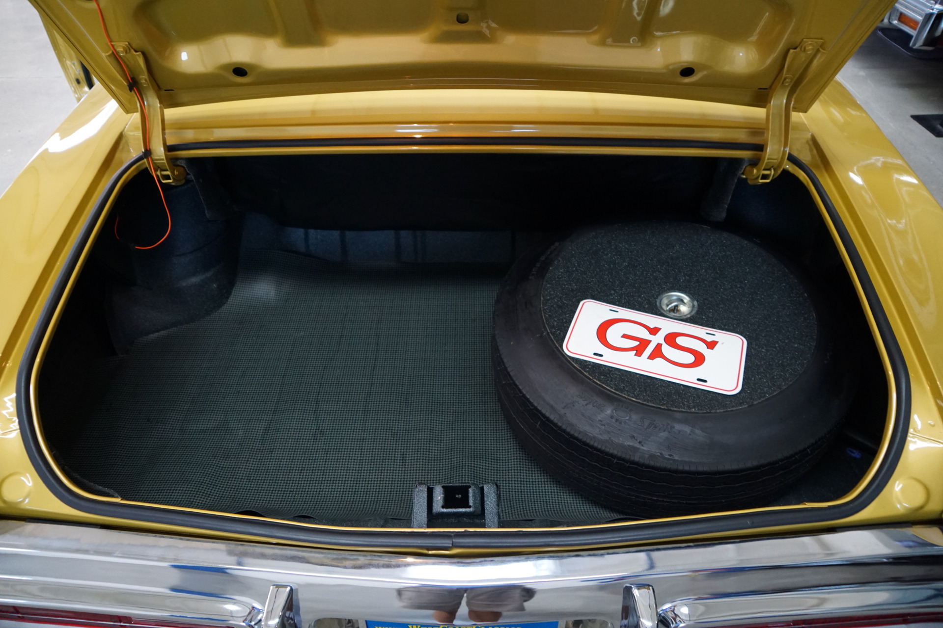 All 81 factory 1971 GSs were only built at the Flint, MI plant. The Stage 1 option package retained fresh air induction in 1971 through a pair of hood mounted scoops sealed to the air cleaner. Under the hood is a matching numbers 455 cubic inch of torque capable of regular gas yet still growling under dual exhausts.
