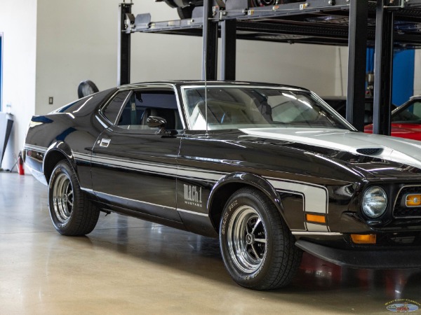 West Coast Classics are proud to present a rare and very striking example of this 1971 Ford Mustang Mach 1 SportsRoof (Fastback) with it's original 351 V8 4 barrel engine and C6 automatic transmission in a striking 'Raven Black' color paint with 'Silver' sports stripes with a matching 'Black & Silver' Interior; and loaded with factory options including air conditioning, power steering, power brakes, 3.25:1 Locking Differential Axle, AM Radio and a car which underwent a ground up restoration.
