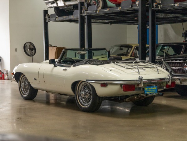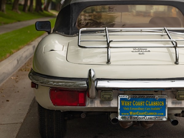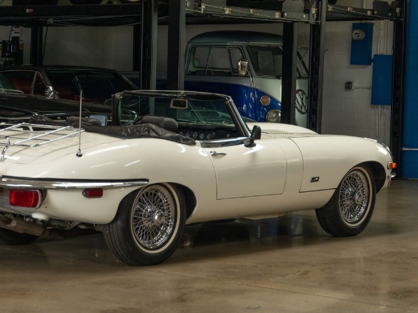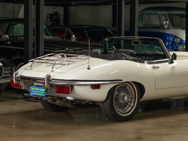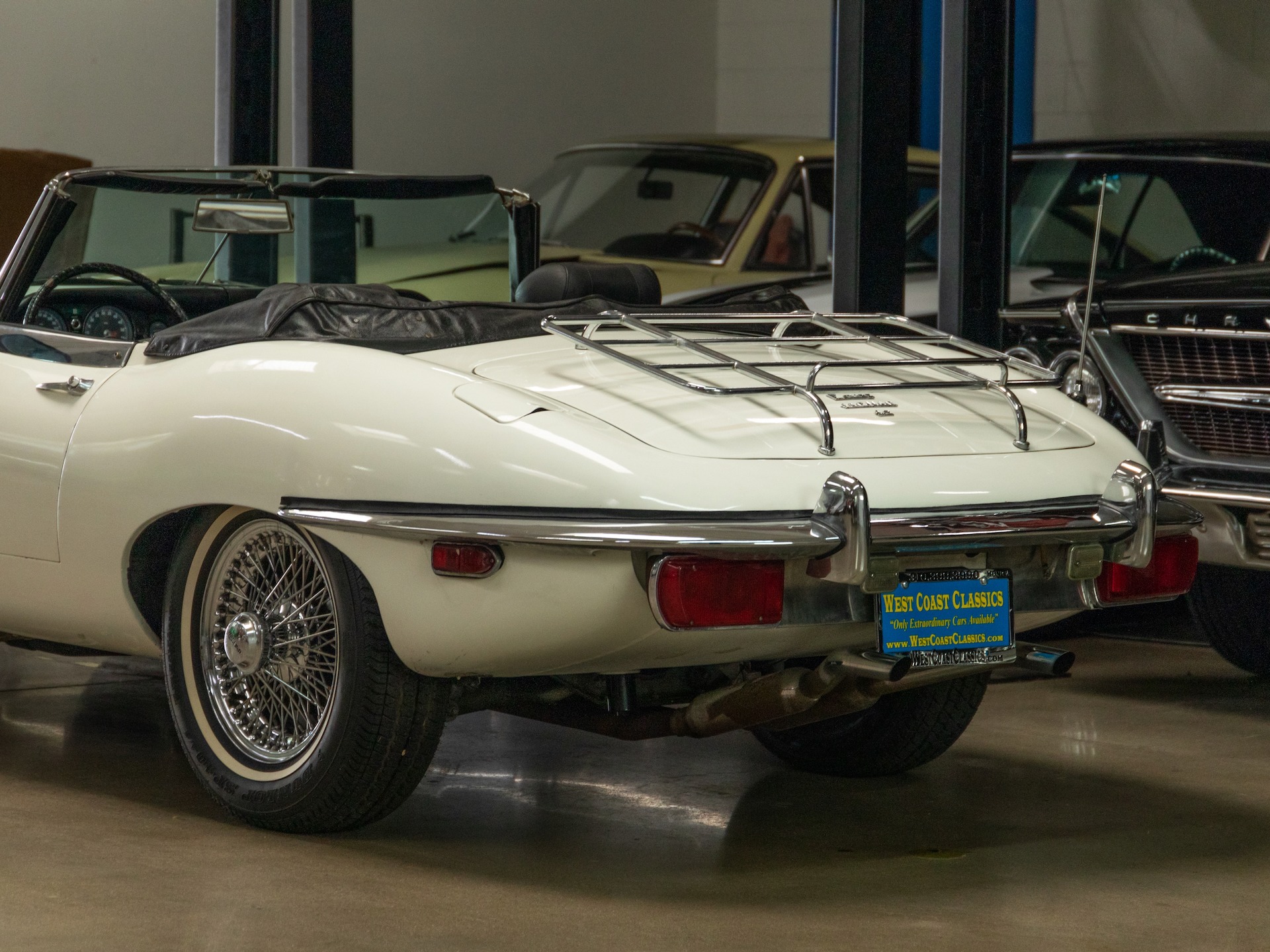West Coast Classics are proud to present a rare example of this mostly all original and always garaged rust and accident free 1971 Jaguar XKE E-Type Series II roadster! This is a coveted original southern California car, an extremely rare and collectible 1971Jaguar XKE E-Type Series II convertible with a 4 speed manual transmission and it's original matching #'s 6 cylinder 4.2L/246HP engine in 'Old English White' color paint with its original 'Black' leather interior, factory air conditioning and all five original Jaguar wire wheels!