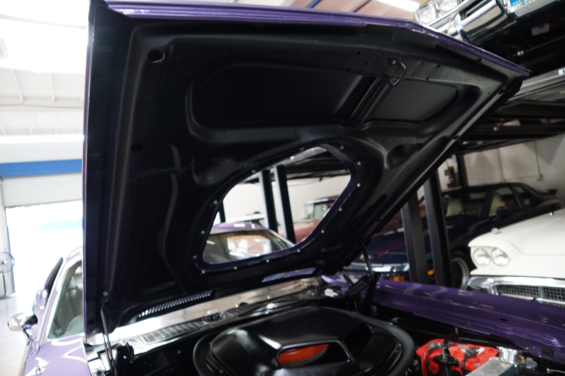 We have a thick file of records documenting the car's recent restoration and showing that at no time was any expense spared on this particular cars costs with over $150K spent at only the very best restoration and body shops of San Diego, CA! A simply exquisite work of art! As previously stated the car has been professionally finished in classic 'Plum Crazy' color paint with Billboards and which is still virtually flawless. Obviously an always garage kept car with the original floor boards, trunk and all the typical rust-prone areas completely solid and rust-free with no bondo or filler present.