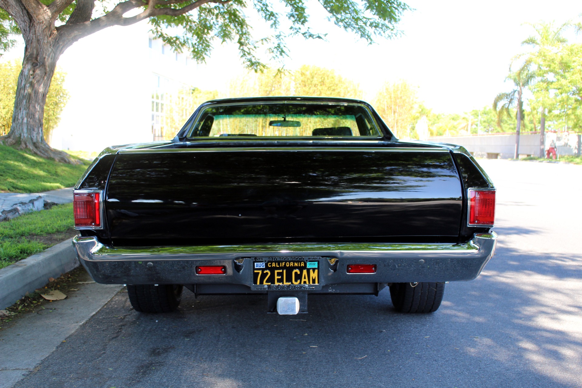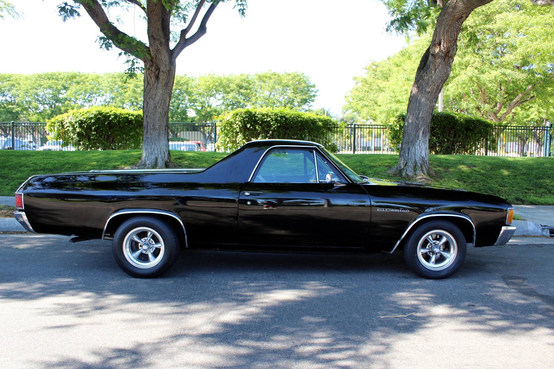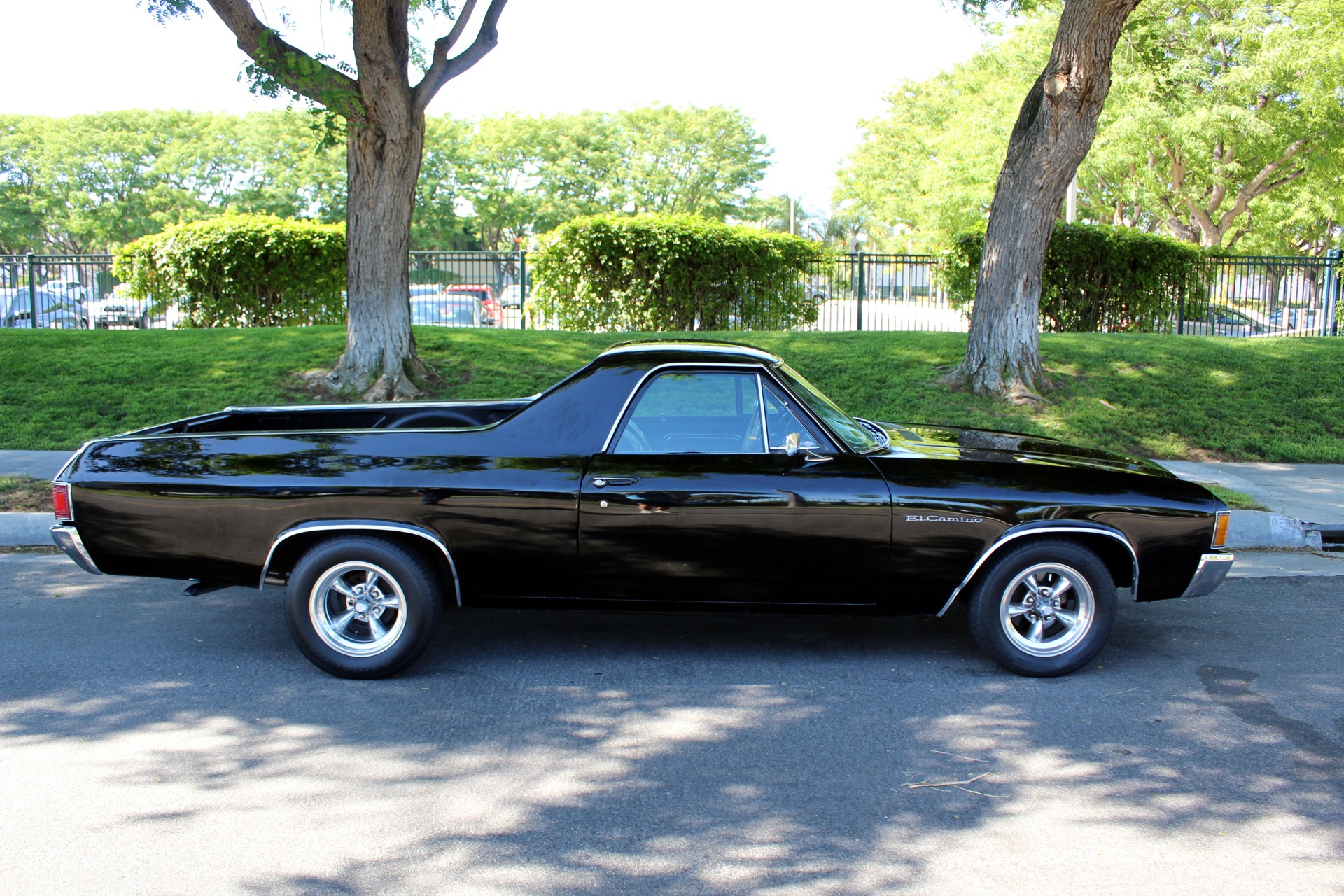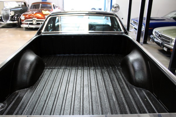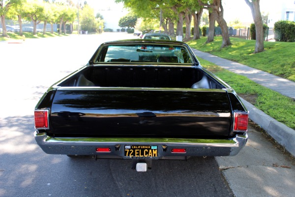 West Coast Classics are proud to present a very nice example of this southern California 1972 Chevrolet El Camino Pick Up in 'Black' color paint with a 350 V8 crate engine, 700R4 heavy duty automatic transmission, air conditioning, power steering, power brakes, fairly new tires, AM radio, original spare wheel in cover behind the passengers seat with original jack, 'Black Vinyl' bench seat interior and matching black color carpet and kick panel carpet and dashboard and door panels. There are no signs of any accidents and no rust and this truck was obviously always well maintained and garaged since new.