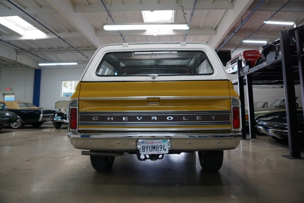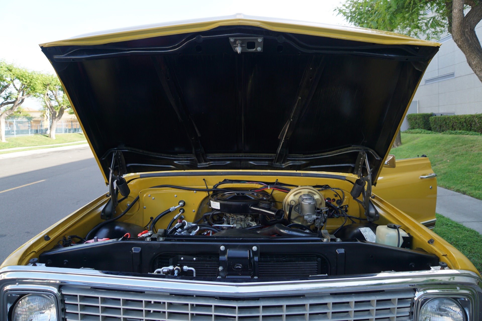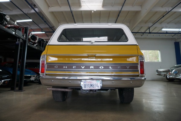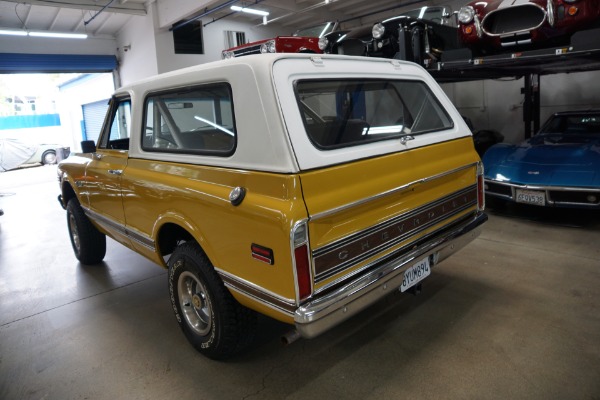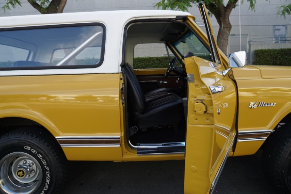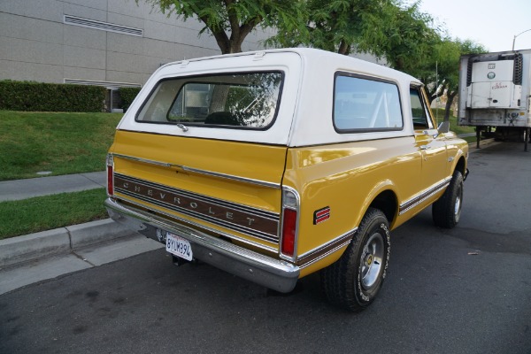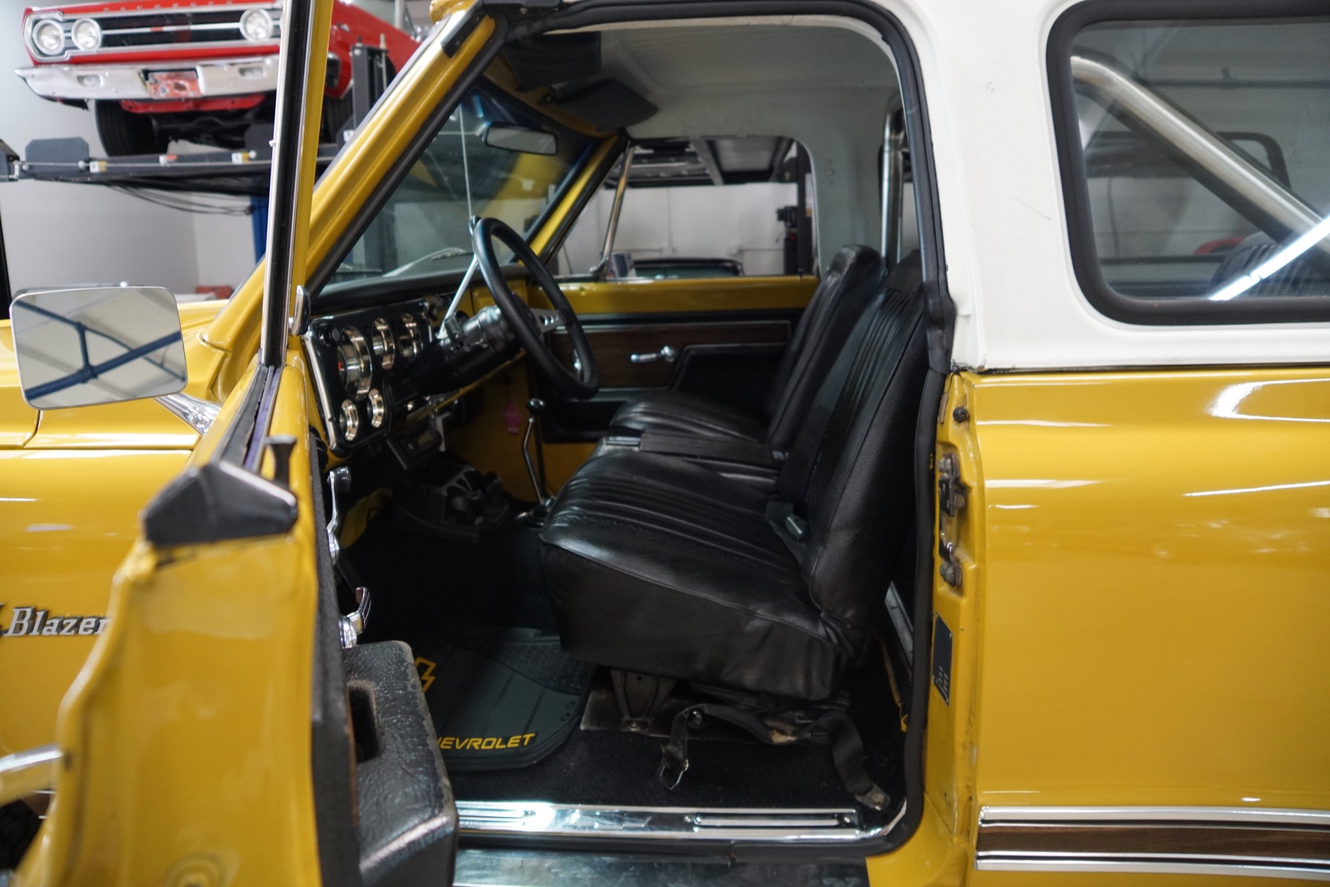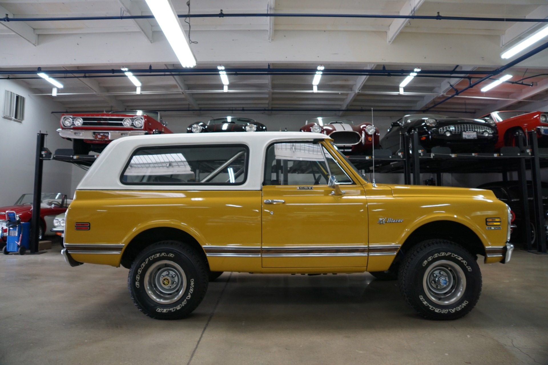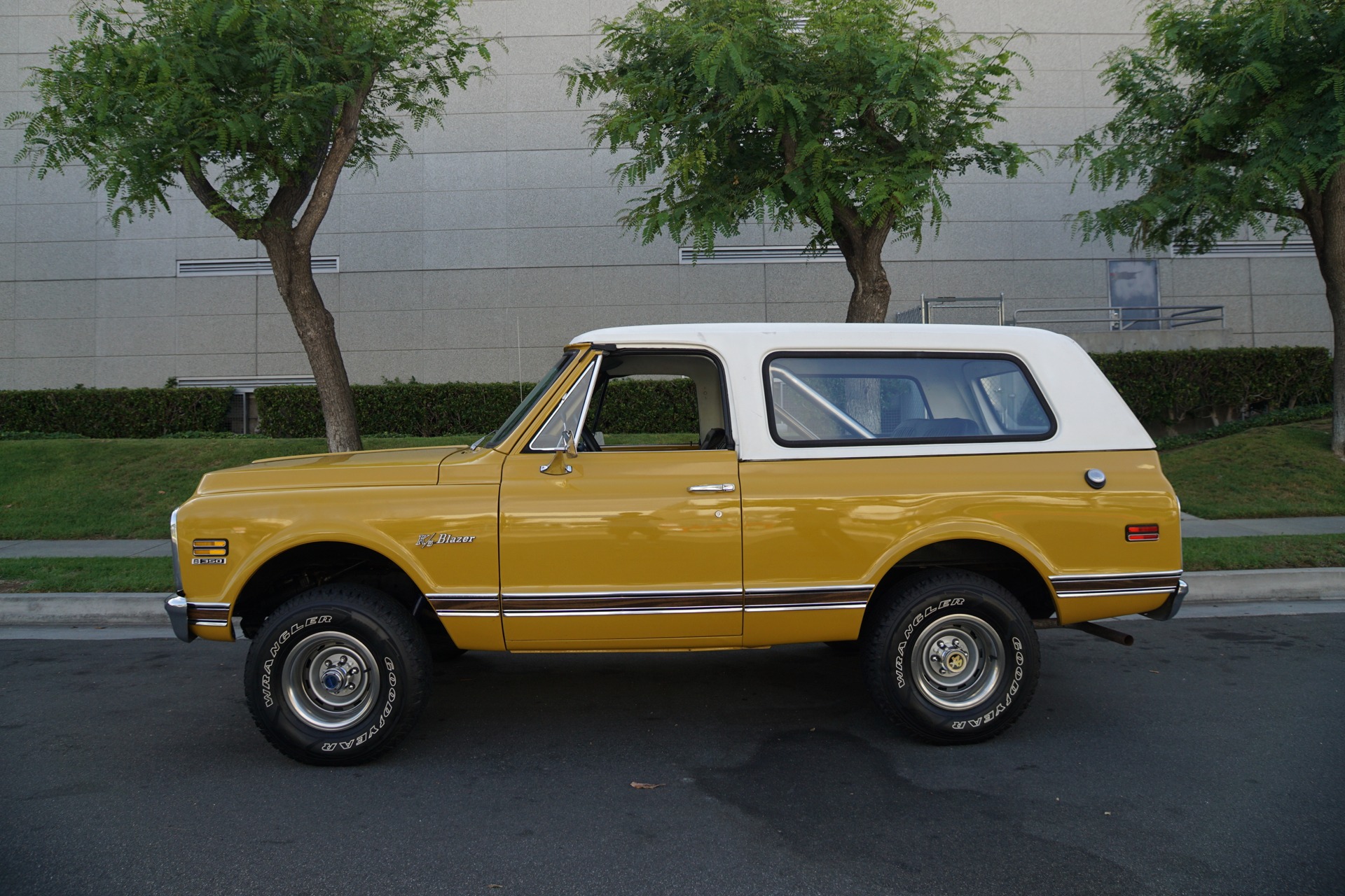 The buyer of this K5 Blazer selected the Cheyenne Super package, which was the top-of-the-line trim level in 1972 and was added to only 7% of trucks that year. That package includes all the wood-grain exterior trim and deluxe interior fittings, such as wood-grain dash inserts, a headliner, deluxe upholstery and more. The Cheyenne package had a silver instrument cluster, and color-keyed vinyl door insert, as well as door storage pockets and color-keyed carpeting. The color-keyed headliner was perforated. For the first time, the bucket seats were available for all trim levels and included a lockable console. The "Custom Sport Truck" (CST) was also a top of the line model option with for example wood grained aluminum trim around the lower section of the body and an upgraded interior. The 5.7L 350/250HP V8 was the top-of-the-line engine in 1972 making this one very rare & very desirable and increasingly collectible 1970's Full Size SUV. It has every option in it that you could buy in 1972.