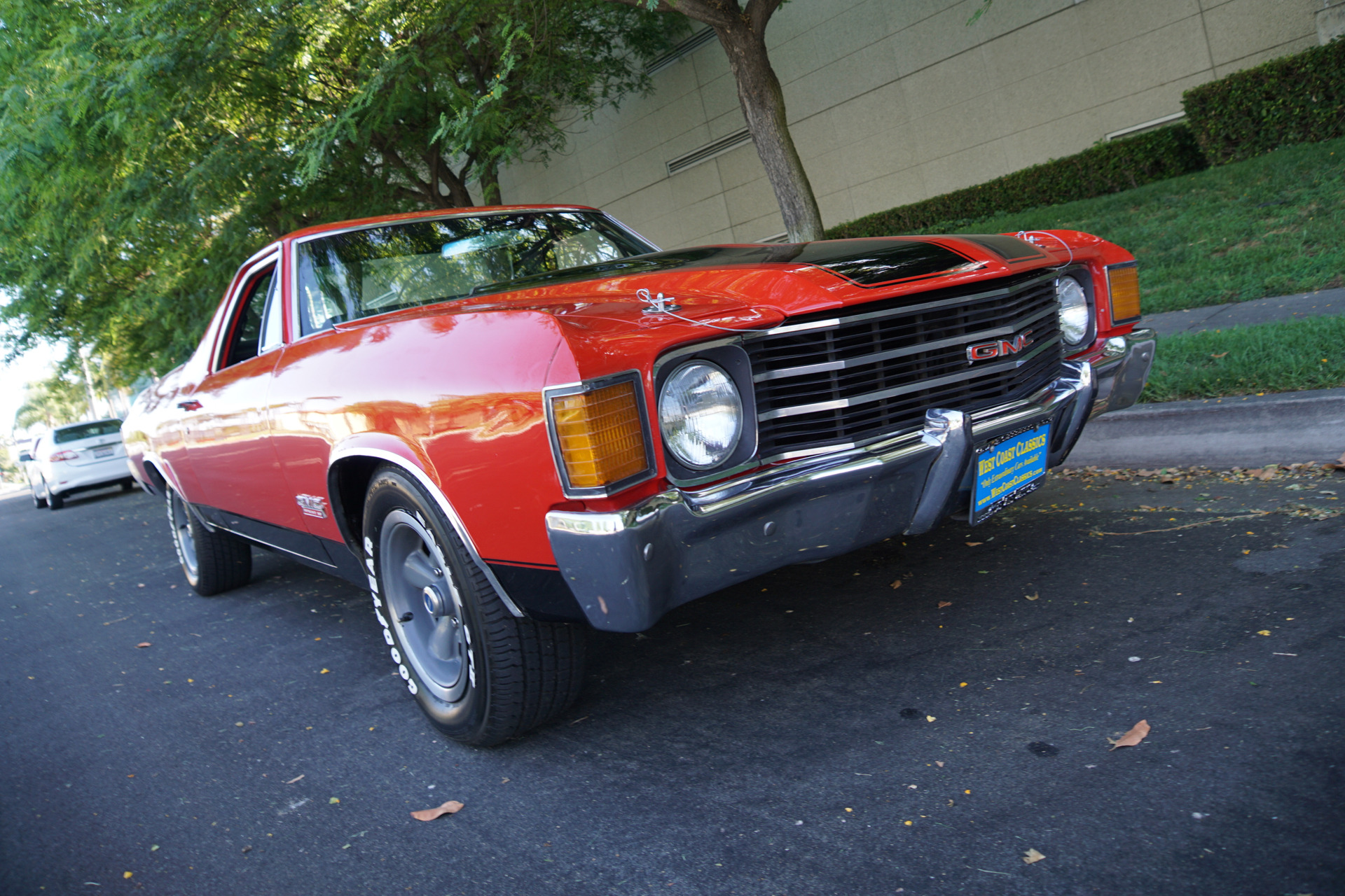 In 1971 GMC began producing the Sprint, their version of the Chevrolet El Camino. This light-duty pickup truck was identical to the El Camino except for the name and the chassis for both cars was based on the Chevrolet Chevelle station wagon/4-door sedan wheelbase. The GMC SP package, only offered on the Sprint Custom, was GMC's own equivalent of the Chevrolet SS package. It included the same features as the Chevrolet SS. The Sprint SP was an option package, RPO YE7, rather than a distinct model. Engines were an L48 350 4 barrel, LS3 400 (402) big block or the LS5 454/365HP big block. The top engine option in the Sprint was the LS5 454 which featured a forged steel crankshaft. Even with relatively low 8.5:1 compression, this motor was rated at 365 HP. This is the highest horsepower rating of any light-duty GMC ever produced.