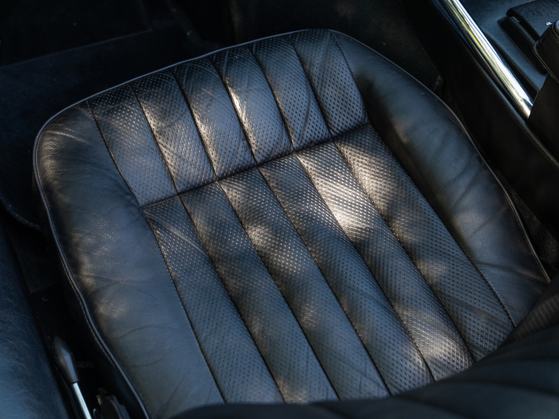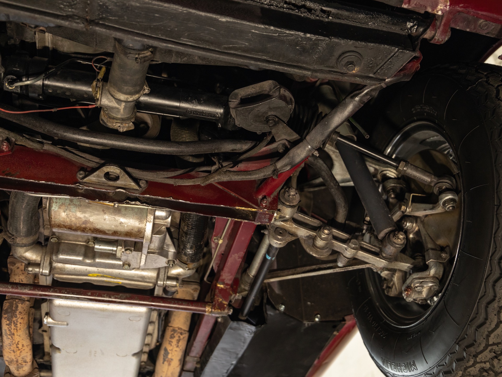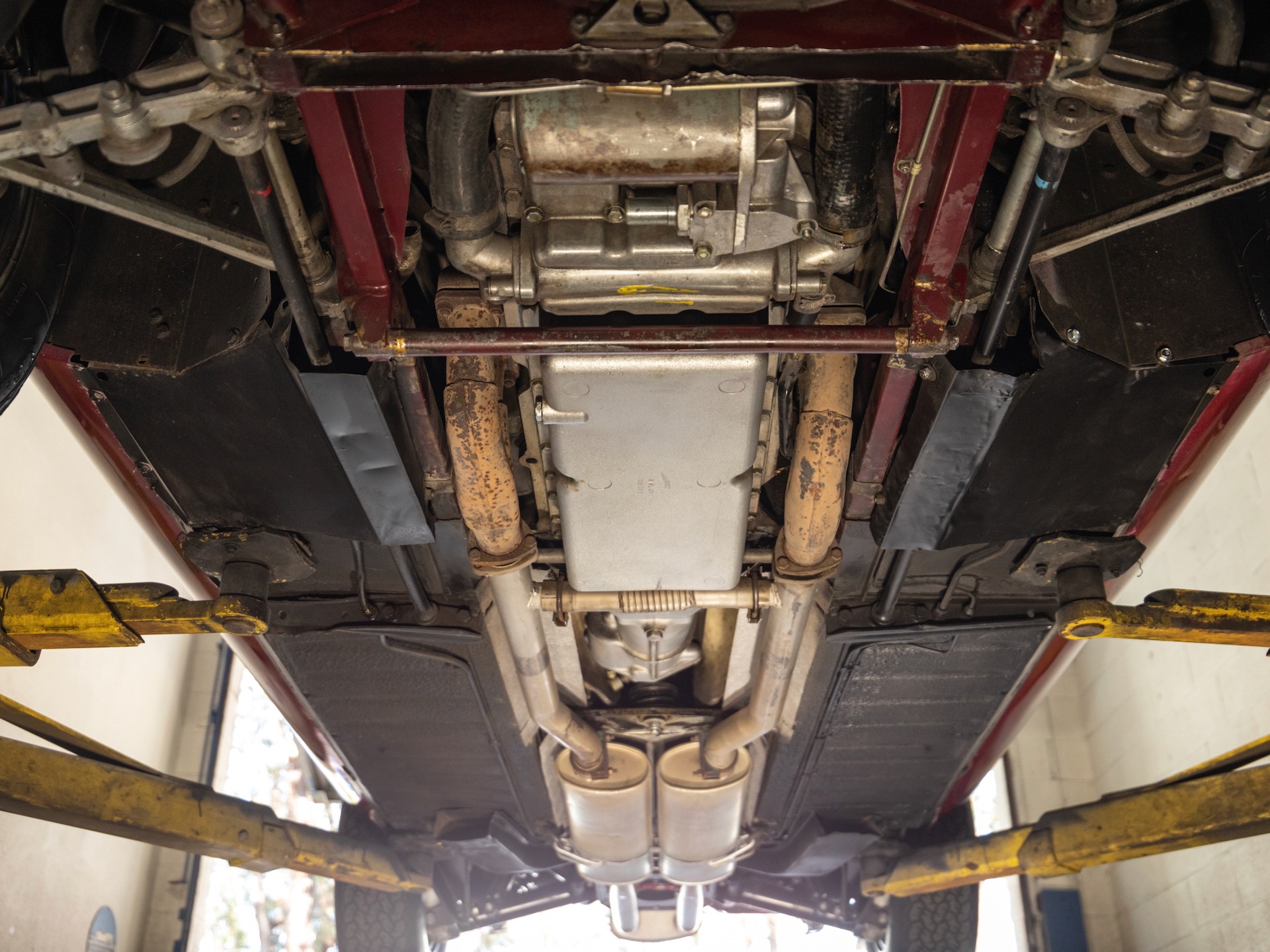 The car looks extremely impressive in its original 'Carmen Red' color paint and the car still boasts its original Black color leather interior with the door panels, dashboard, seats and carpets all in very fine condition. The original Black color soft top is in great shape and the car has it's original matching tonneau cover. The factory chrome wire wheels are also in beautiful condition and the car has it's original spare wire wheel located in the trunk which of note has its all original wood trunk lining and the spare wheel compartment is all in remarkably intact and all original unspoilt condition.