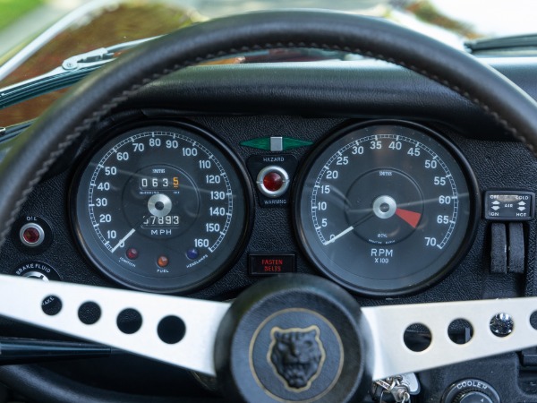 A completely rust free example of this coveted legendary E-Type Jaguar with its original matching #'s V12 engine and believed to be only 37k original miles, its original and very desirable 4 speed manual transmission and with all of it's original factory specifications and options including original Black leather interior and carpets, AM radio, power steering and air conditioning!