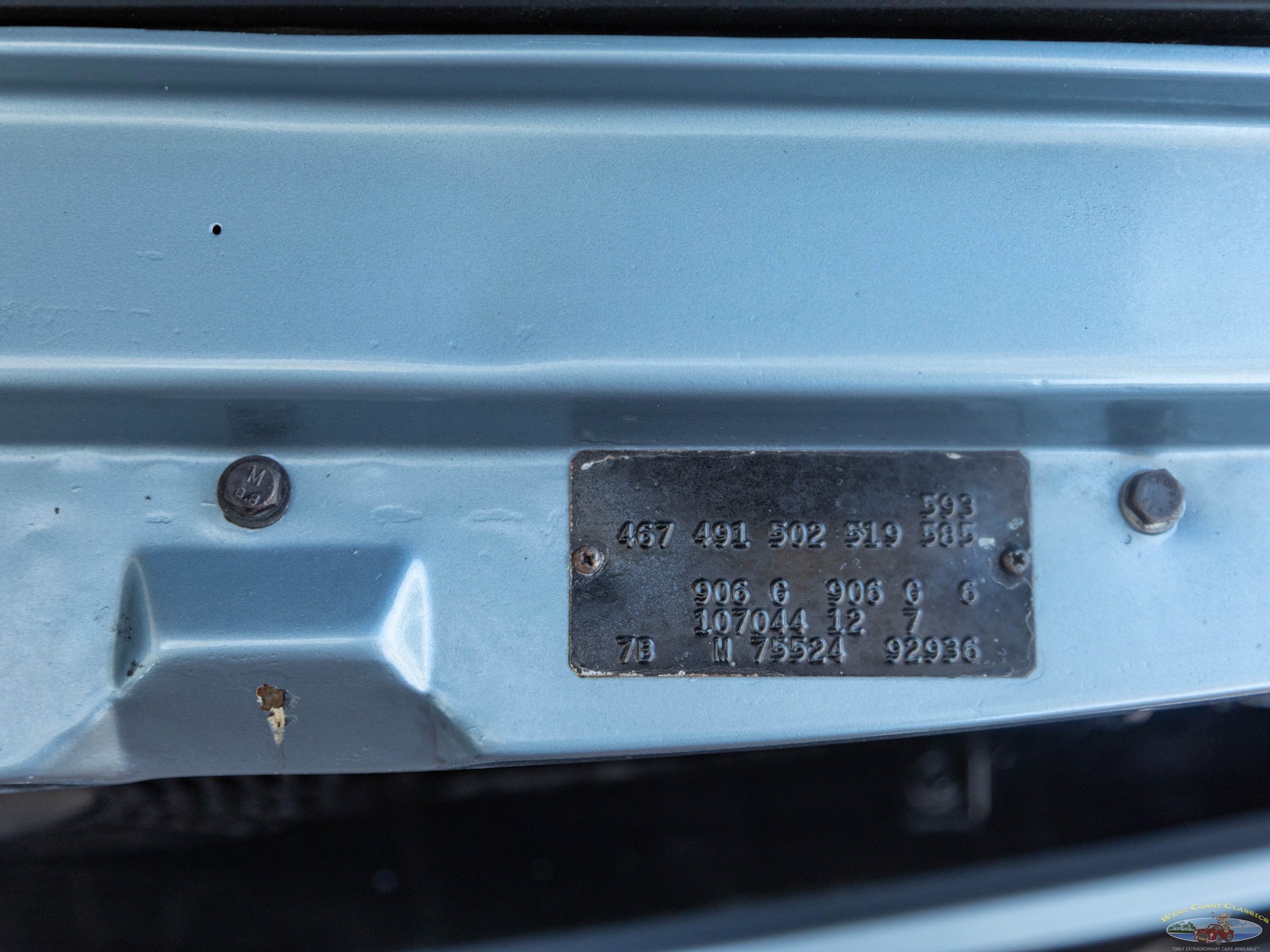 The factory original 'Gray Blue Metallic' (color code 906) color paint is in extraordinarily fine condition and still reflects like glass and the matching all original 'Blue' color interior is also in very good shape. The car has it's original factory German canvas 'Dark Blue' soft top and it's factory 'Gray Blue Metallic' hardtop which is also in pristine condition.