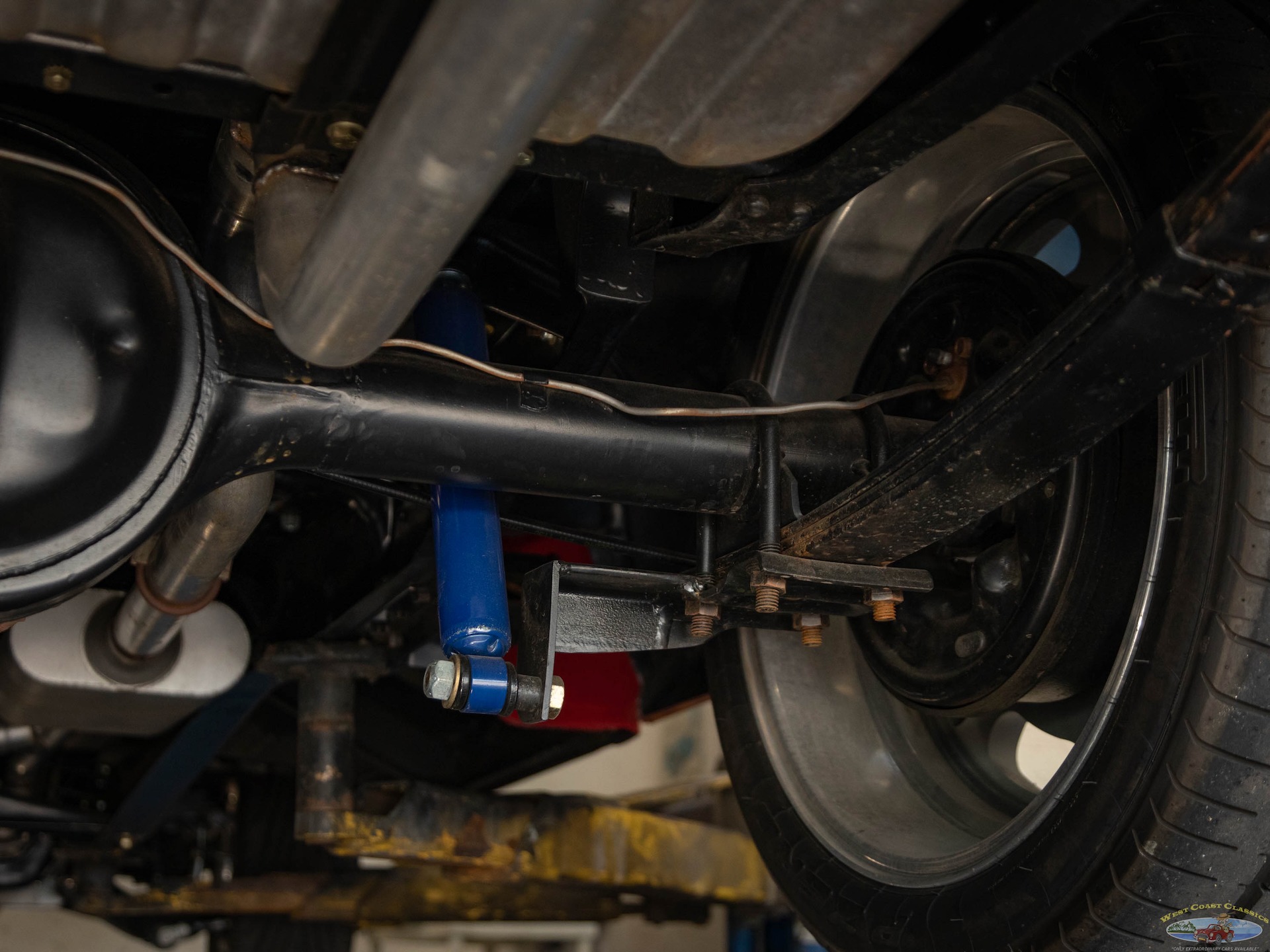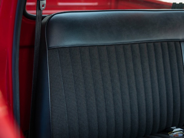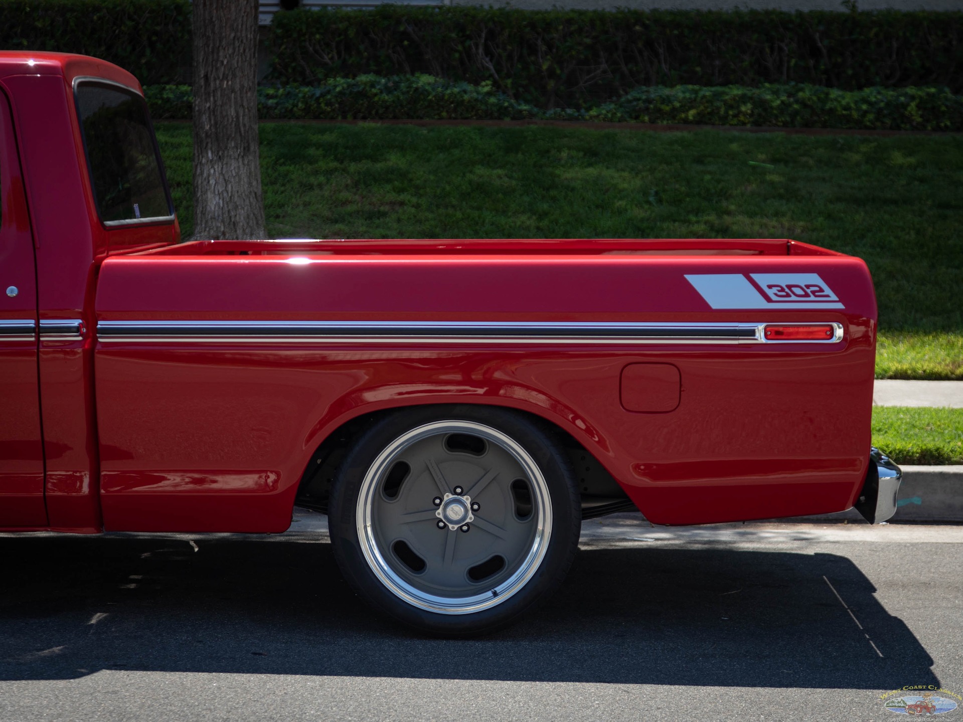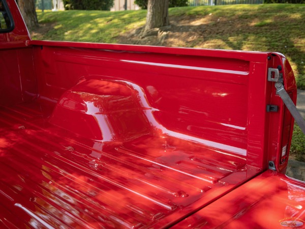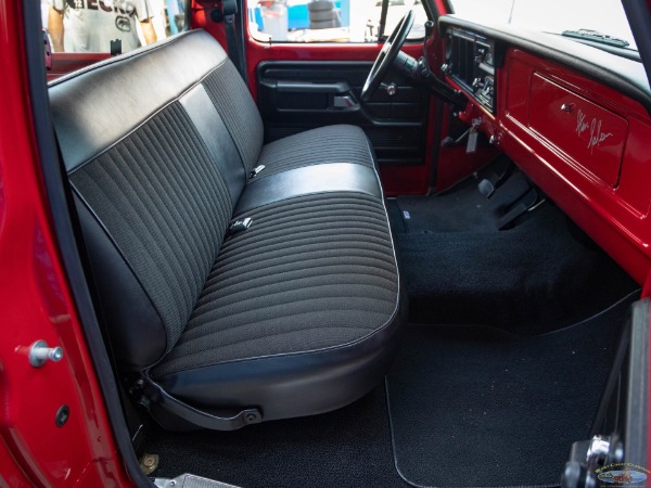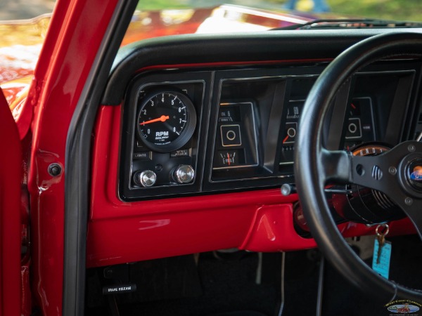 We would venture to suggest that this truck is the perfect mix of retro cool with a hot rod presence. It will cruise effortlessly on the highway and gets around town with plenty of power on tap. The truck rides fantastically considering the stance. There are few classic trucks with the dominating rear stance of this classic '73 F100. Zero rubbing with the massive 335 Pirellis tucked under the fender gives the driver peace of mind when navigating driveways and speed bumps. This truck is the ultimate cruiser and conversation piece for cars and coffee! The truck will be sold with a thick file documenting its frame off nuts and bolt restoration.