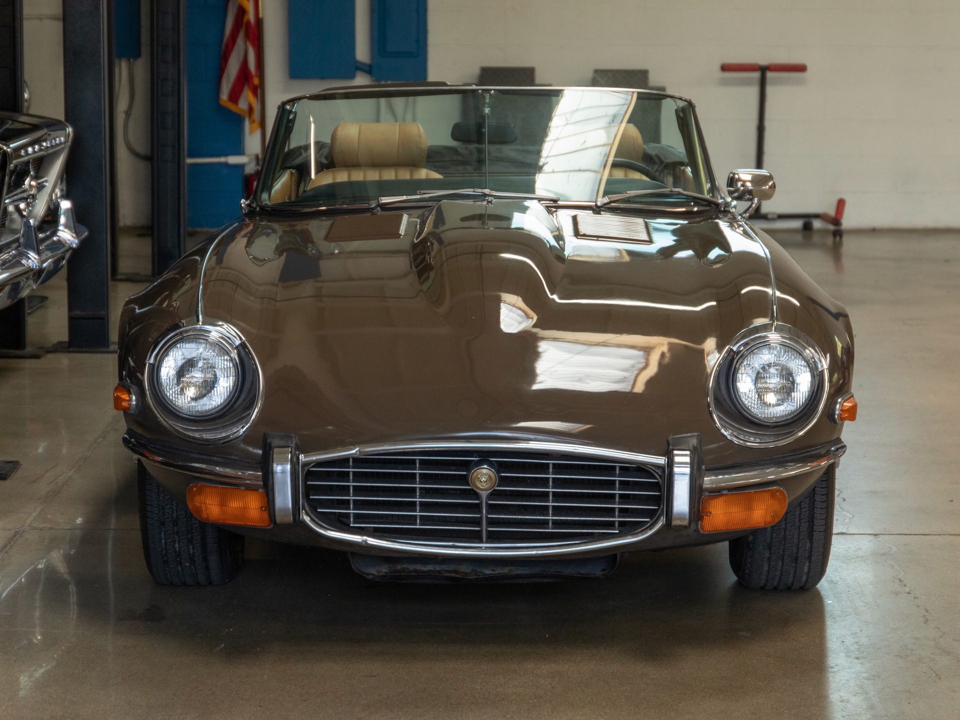 This is a rare opportunity to own a completely rust free example of an obviously always garaged and virtually completely stock 1973 Jaguar XKE V12 Series III Roadster with its original matching #'s engine and 4 speed manual transmission with power steering and air conditioning and leather seats in very fine condition throughout with only some 44K documented original miles with only one careful owner since new!