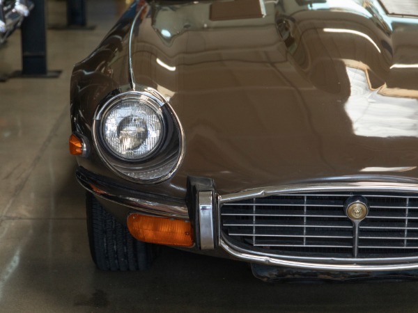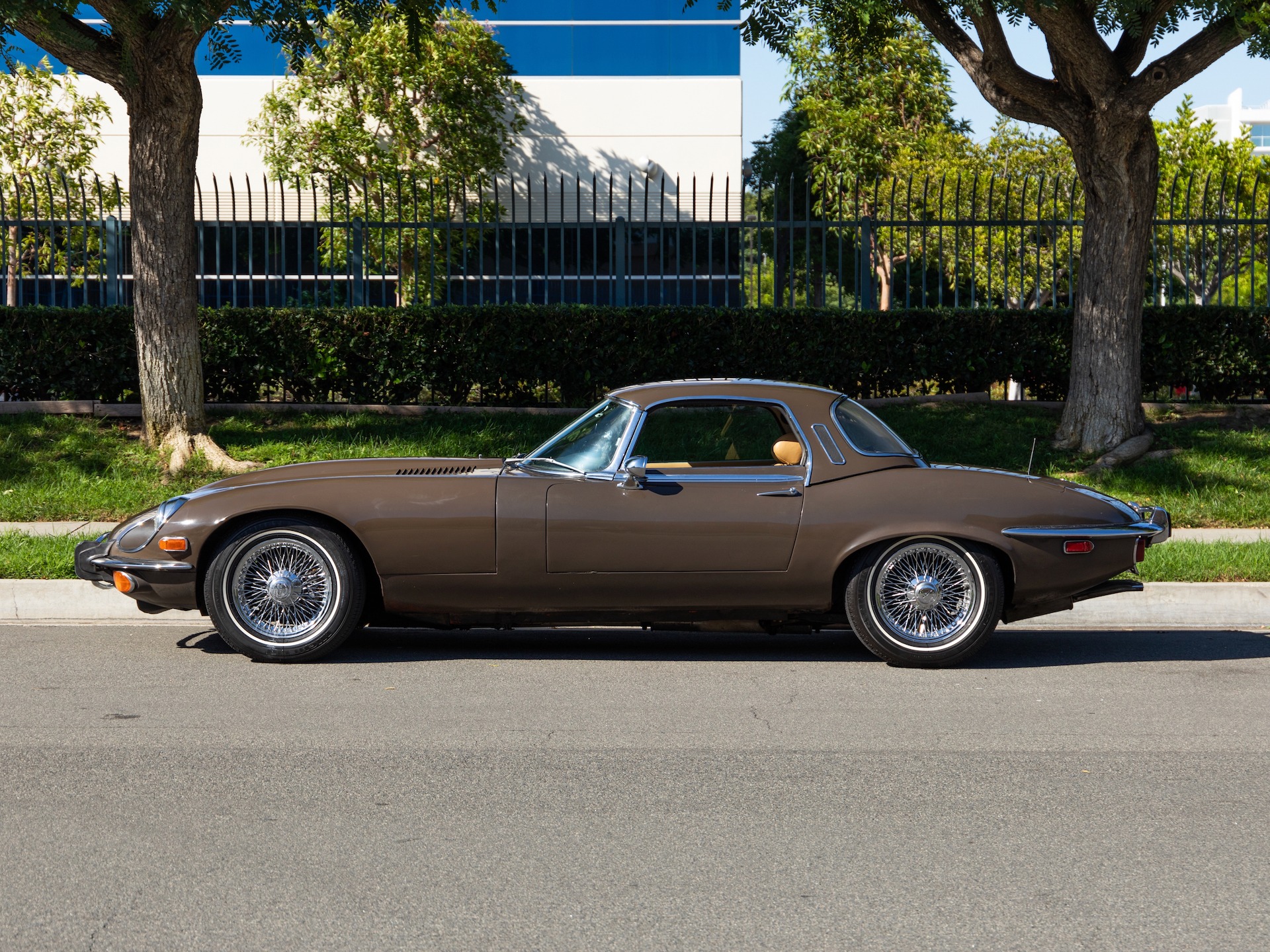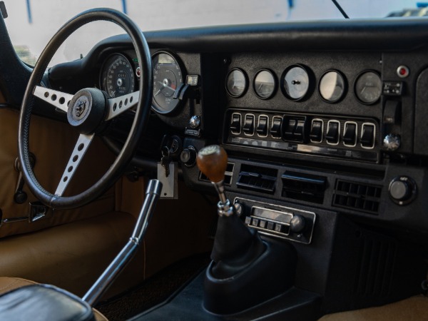A completely rust free example of this coveted penultimate year of the legendary E-Type Jaguar, still boasting the very desirable factory small chrome bumpers, before the ugly 1974 big rubbers, and with its original matching #'s V12 engine, with only one previous owner since new and only some 44k original miles, its original and very desirable 4 speed manual transmission and with all of it's original factory specifications and options including original Tan leather interior and carpets nicely preserved with original Coco mats, AM radio, power steering and air conditioning!