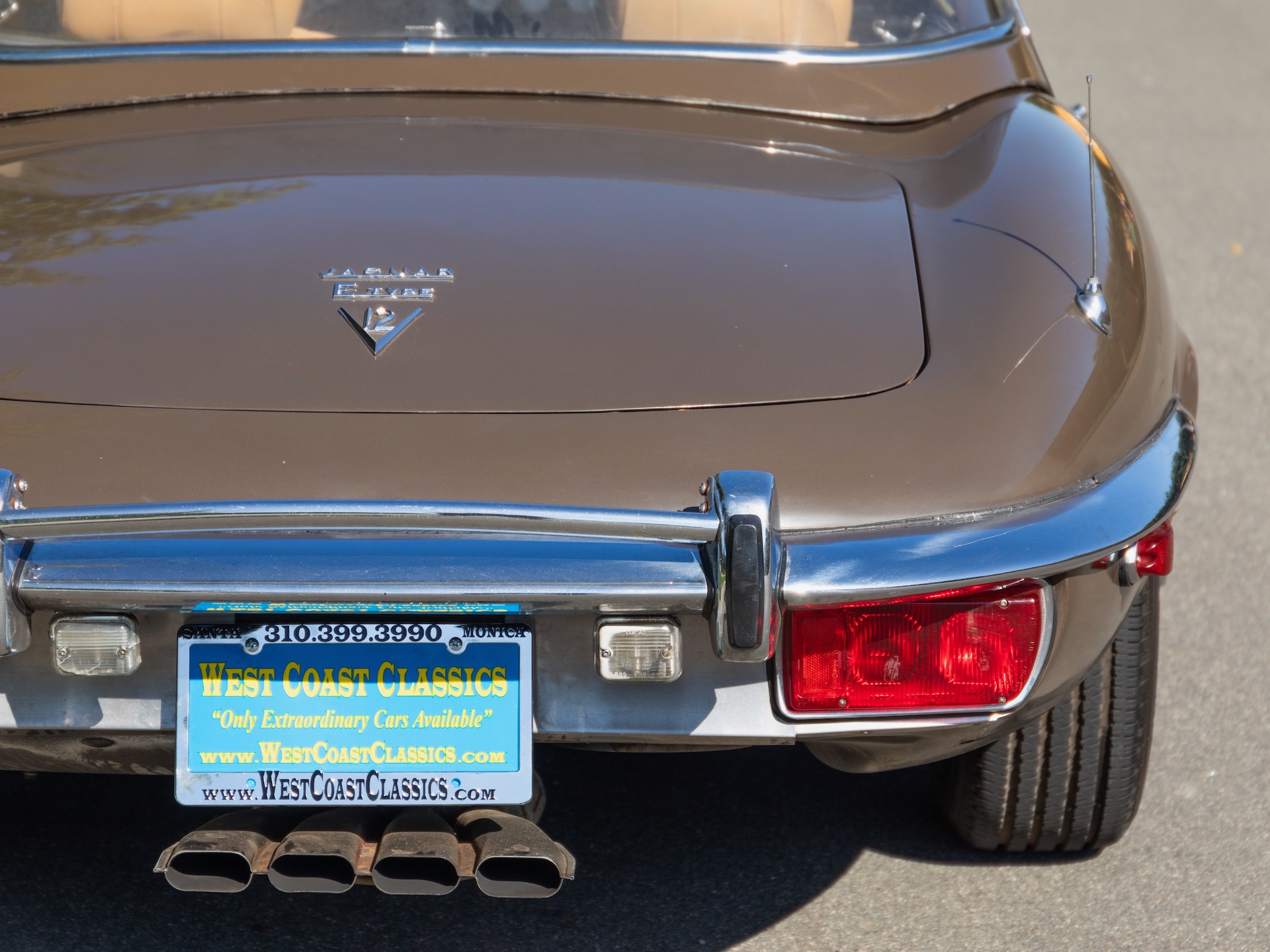 West Coast Classics are proud to present an absolutely exceptional and very rare barn-fresh (garage really!) find of a virtually completely original in its original striking 'Sable' factory paint and with its all original classic 'Tan' leather interior 1973 Jaguar XKE E-Type V12 Series III Roadster with very desirable factory hardtop, original folding soft top, air conditioning, power steering, AM radio, factory tools and boasting only 44K original and fully documented miles !