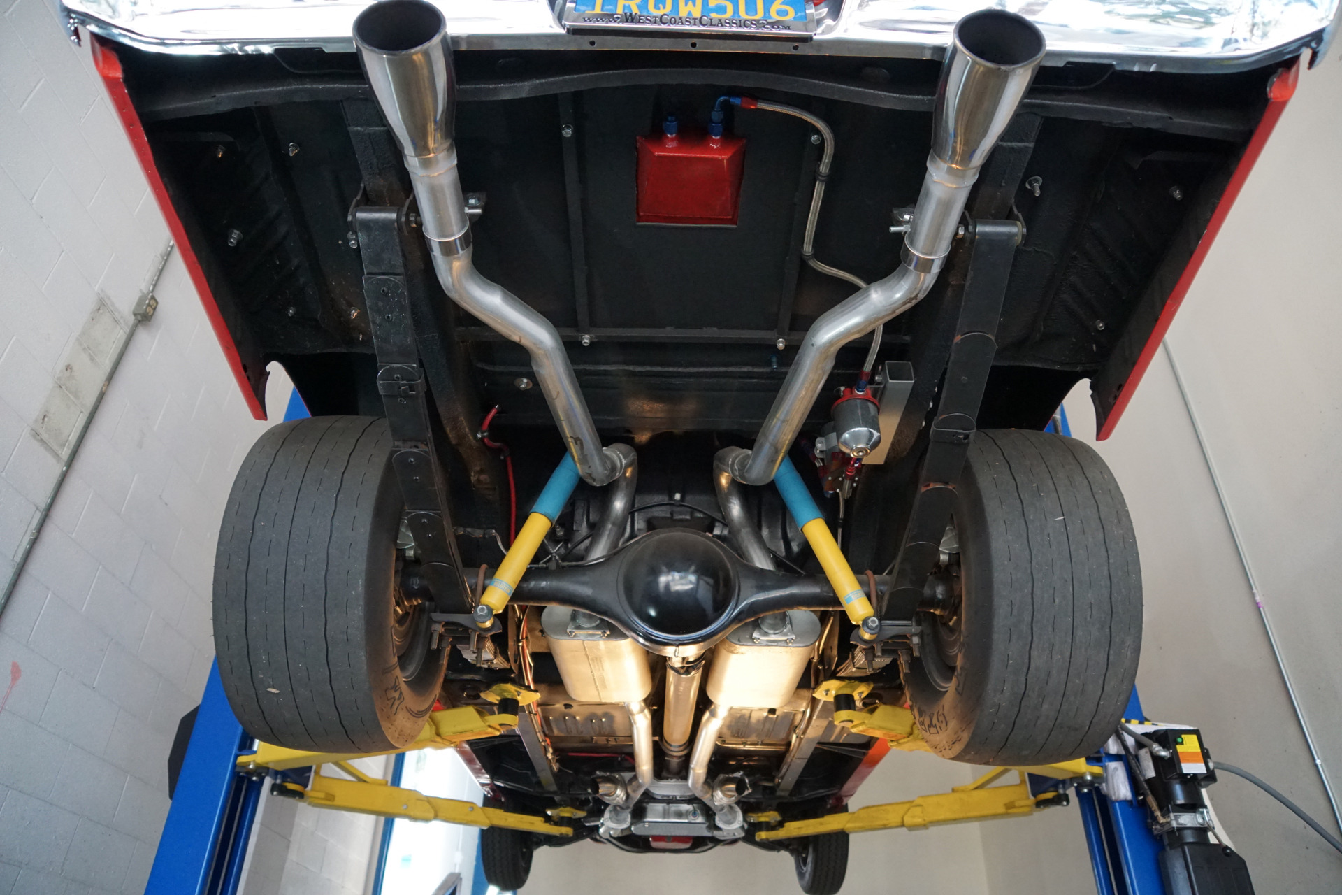 Custom Flowmaster exhaust with push button exhaust dumps at the headers so it can be taken straight from the street to the riggers of the track.