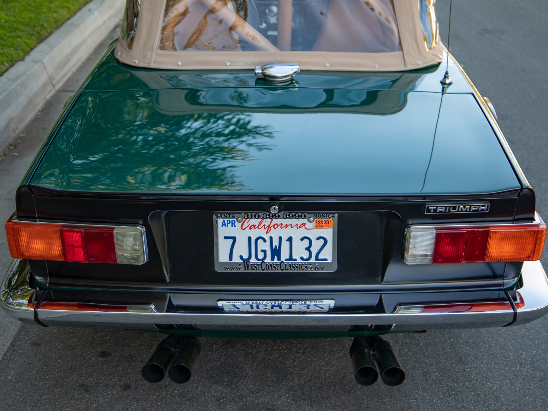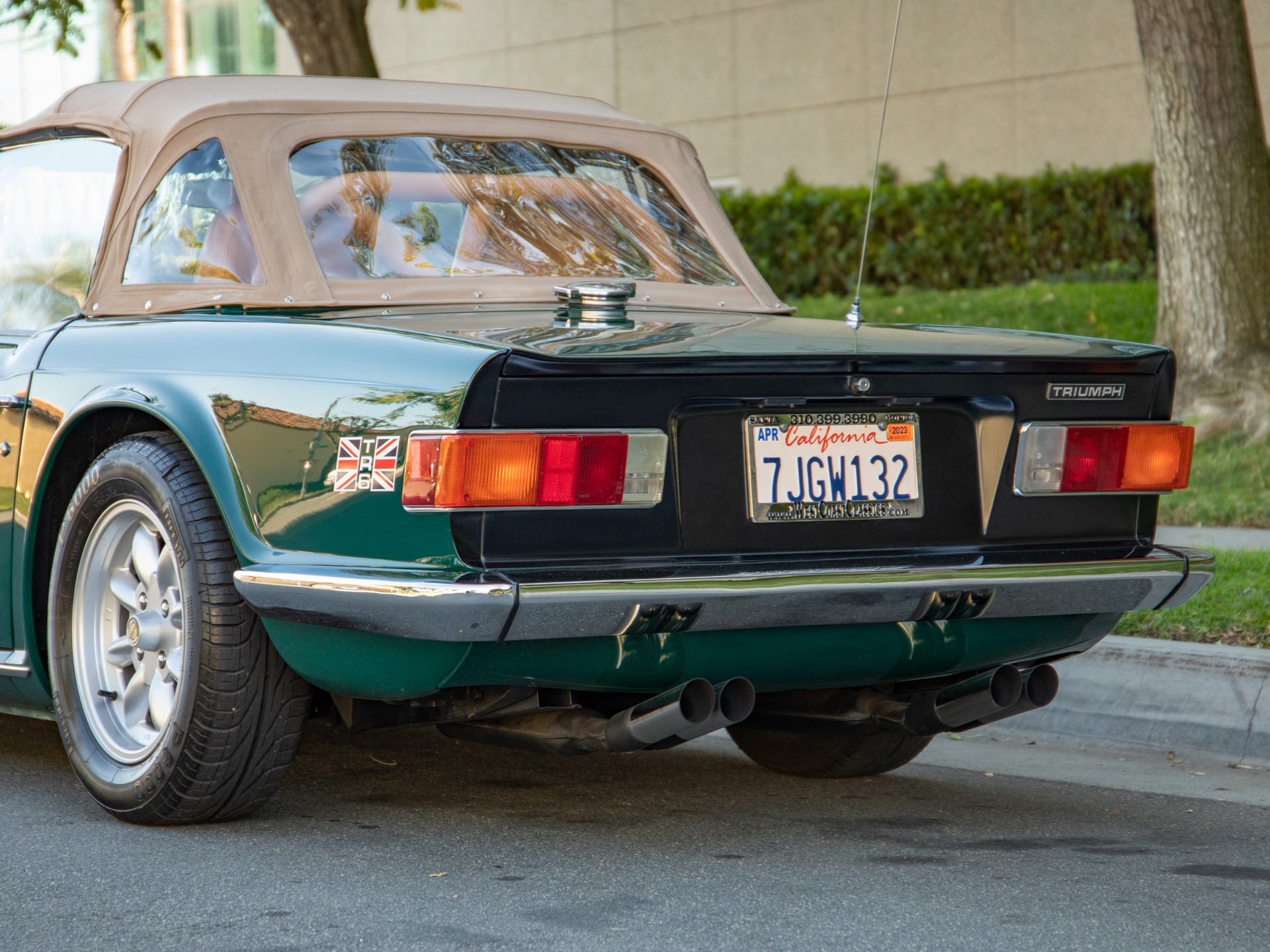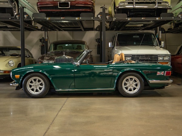 West Coast Classics are proud to present an absolutely superb and expensively customized example of this 1973 TR6 Roadster Convertible in the most classic and very striking 'British Racing Green' color paint with a newly upholstered Tan interior and soft top and tonneau cover and with a full weather tonneau cover and a file documenting its full and truly no expense spared frame off restoration!