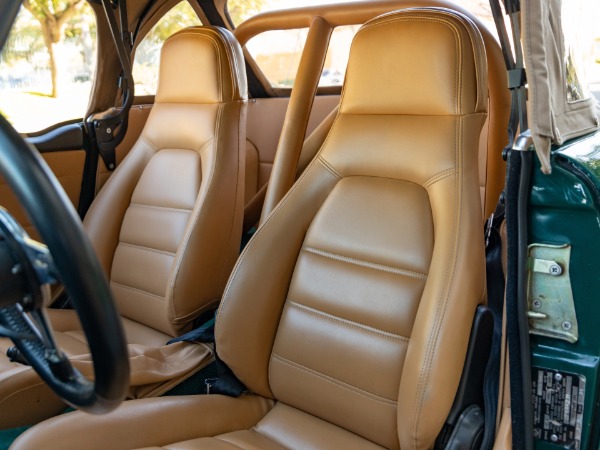 The classic and most desirable 'BRG' color paint is in simply stunning condition and the interior is also quite extraordinary with Tan bucket seats and matching door panels interior, a lovely original steering wheel and original wood dashboard. The Tan color soft top is also as new and as is the cars tonneau cover and full weather tonneau cover and it's all original wheels. The upgraded and bored to 2.7L 6 cylinder engine with triple Weber carbs purrs quietly under the hood and the upgraded 5 speed manual transmission shifts smoothly through the gears - an absolute pleasure to drive! The car would have to be considered pretty much flawless, one hell of a statement, but which we believe to be true!