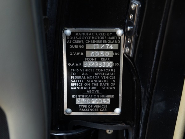 Sold new on 2/28/1975 at 'Roy Carver Rolls-Royce' of Costa Mesa, CA to its original Corona Del Mar, southern California owner in this striking color combination and boasting all its original dealer owners books and manuals, tools and service history. From looking at the extensive maintenance history since new you can see that at no time was any expense spared on this car's preventive maintenance.