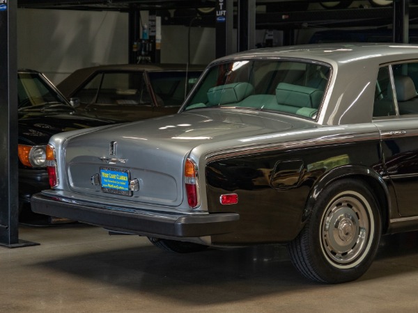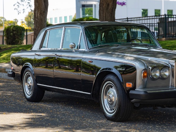 West Coast Classics are proud to present an absolutely striking and obviously exceptionally well maintained and very collectible example of this long time southern California family owned 1974 Rolls Royce Silver Shadow with only 66K original miles and finished in the rare and beautiful original factory two-tone Lower 'Masons Black' (Code 9500701) color paint over its original Upper 'Shell Gray' ( Code 9500434) and with its original 'Light Gray' color 'Connolly' leather hides interior with Black piping and with matching Rolls Royce hubcaps and full original Fawn carpeting with original Rolls Royce Black sheepskin floor rugs and rear foot rests.
