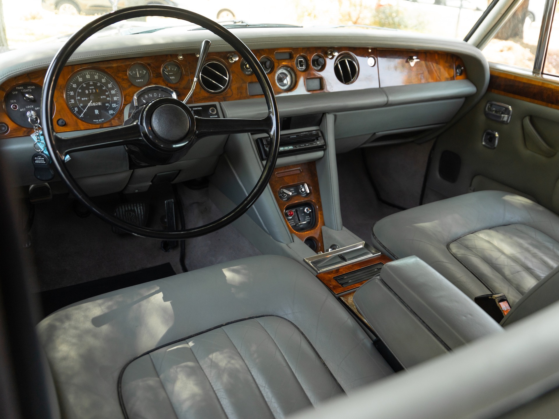 The all original striking factory color combination paintwork is in extraordinary original condition and this is quite likely one of the first most likely all original examples cosmetically that we have yet to come across, with all the paintwork, leather and chrome work, including the Rolls Royce grille, in absolutely outstanding all original and stock condition throughout! The interior is also in virtually completely original condition throughout with its original leather seats and walnut woodwork. The leather dashboard is also original and in exceptional condition (always garaged from the sun) and the original mohair wool headliner is still virtually as new. The original and magnificent burled walnut woodwork is also in very fine condition throughout. All the power options and electric windows are working as they should as is the air conditioning.