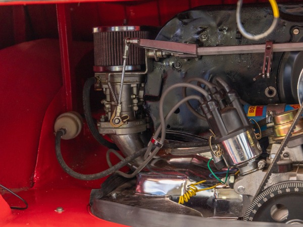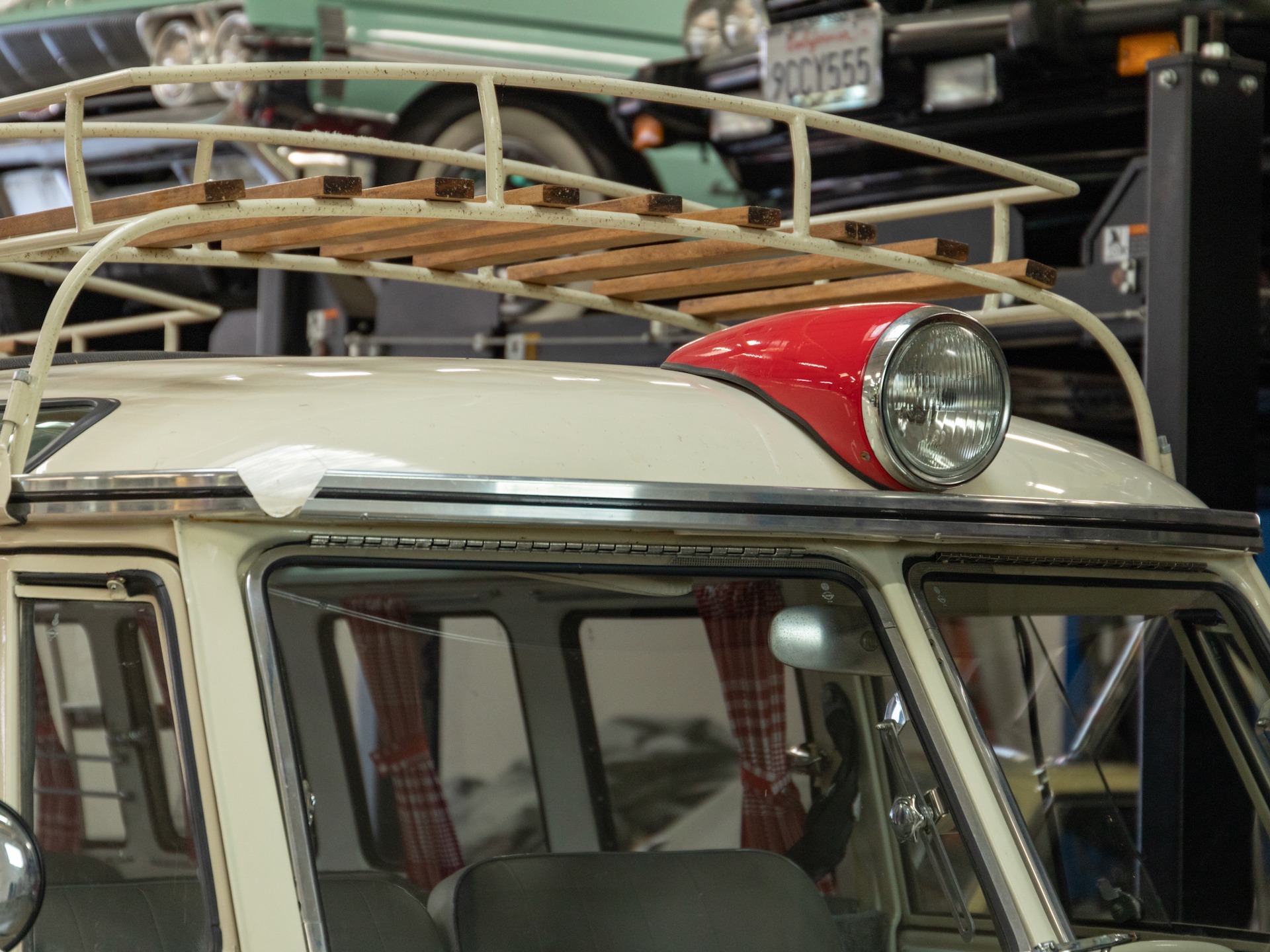 This Brazilian-made 23-window bus with a third headlight option is powered by a 1830cc engine paired with a 4-speed manual transmission. It is equipped with a new clutch assembly, dual carburetors, a new alternator and a new exhaust header. The bus rolls on new 15x6-inch polished aluminum wheels wrapped in new tires. It features pop-out Safari front windows, as well as front and rear roof racks with a sliding black canvas top. The interior is gray and white with third-row seating and curtains on the windows.