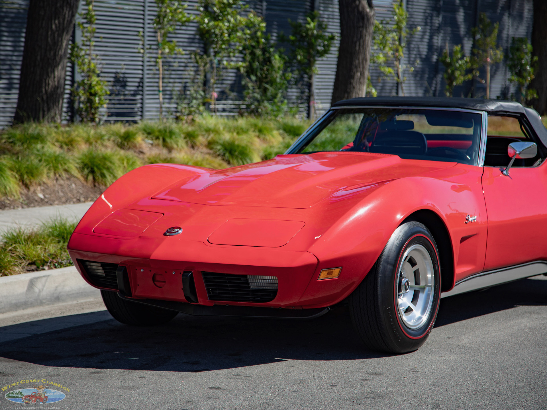 West Coast Classics are proud to present an exceptional example of this L48 matching #'s 350 V8 1975 Chevrolet Corvette Convertible Roadster, the last of the Corvette roadsters until they resumed production in 1986, in its original 'Mille Miglia Red' (Code 76) color with its original 'Black Vinyl' (Code 19V) interior matched to an automatic transmission!