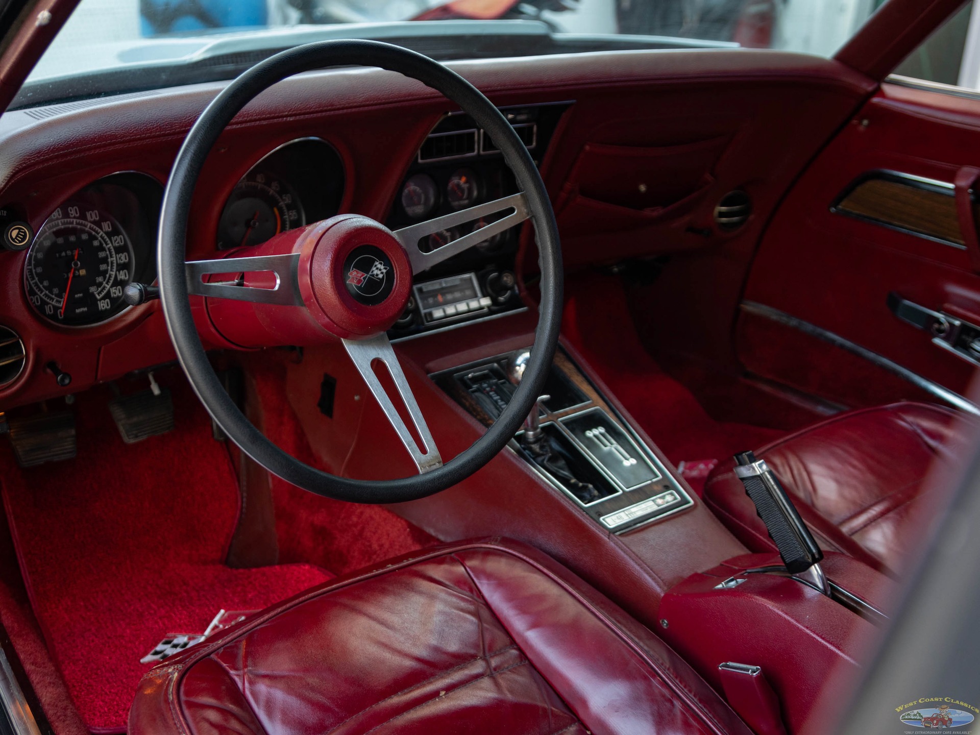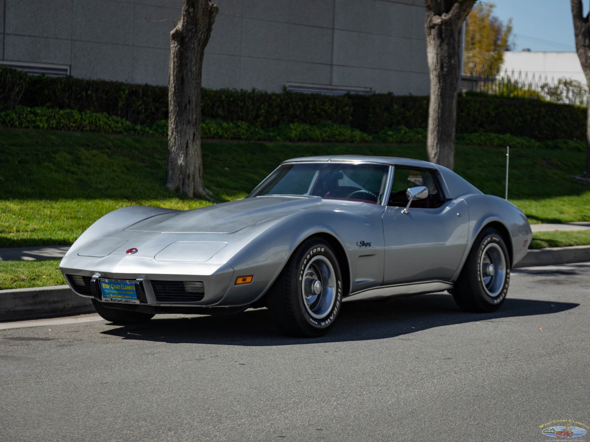 West Coast Classics are proud to present an exceptional surviving example of this desirable 1975 Chevrolet Corvette L48 350 V8 4 speed manual coupe in it's all original factory color 'Silver' (Color code 13L) paint with all original body panels and with no signs of any rust or bodywork/accidents, all original 'Dark Red' color Leather seats and trim and (Trim Code 732), original matching # L48 350 V8 engine and fully loaded with original factory options including: