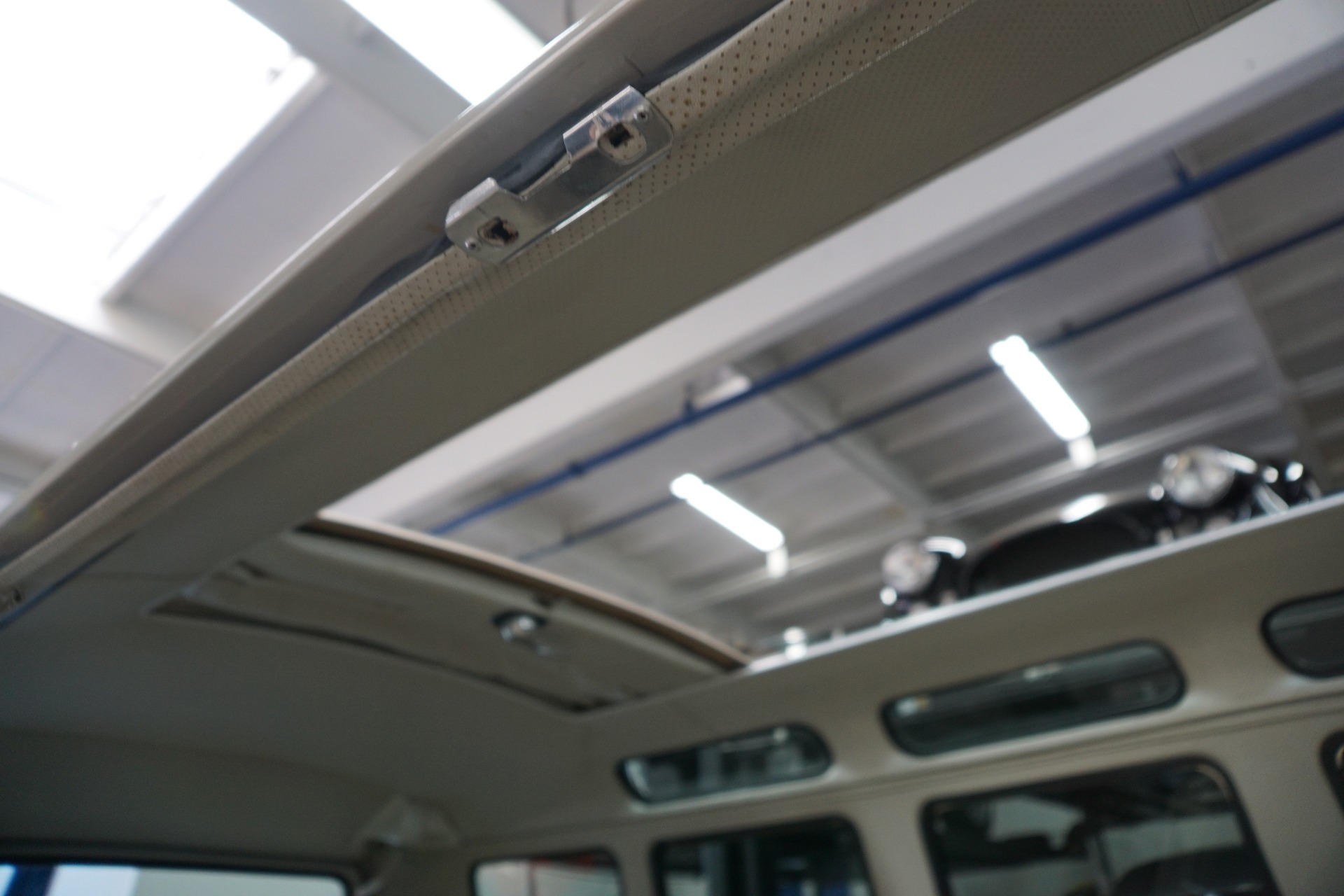 The interior features a walk-through concept with seating for seven, a double floor and a Samba model clock. It rolls on 14-inch painted wheels with chrome hubcaps. The scope of this project was to carry out the restoration, having as reference the classic models manufactured in Germany in the 1960s. To do this successfully, the Technical Check List of TV - H Certification from Germany was adopted as a technical standard reference with the restoration being completed by Kiekhofel Auto Parts and Restoration.