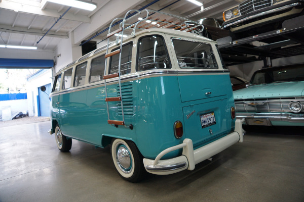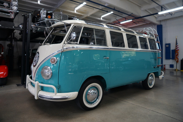 This a highly desirable restoration and conversion tribute to a collectible Type 24 Bus (Deluxe 9 passenger Microbus). Most Deluxe Microbuses were ordered as Samba models (a $160 option) that included a sliding canvas sunroof flanked by 4 skylight windows on each side of the roof (that's a 23 window bus through model 1963 and a 21 window bus starting in model year 1964). The deluxe Microbus was Volkswagens top-of-the-line transporter.