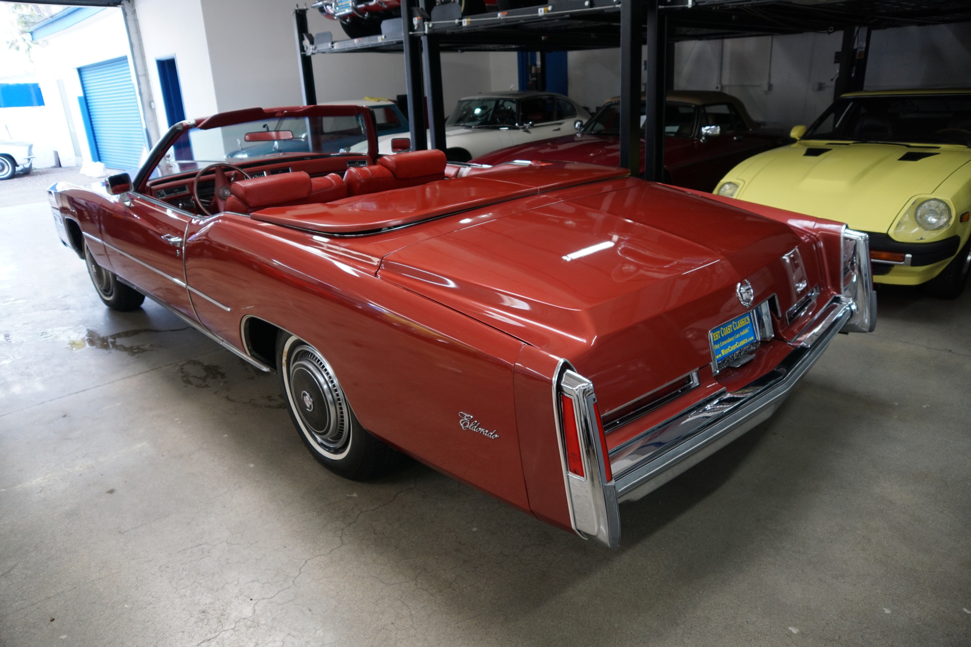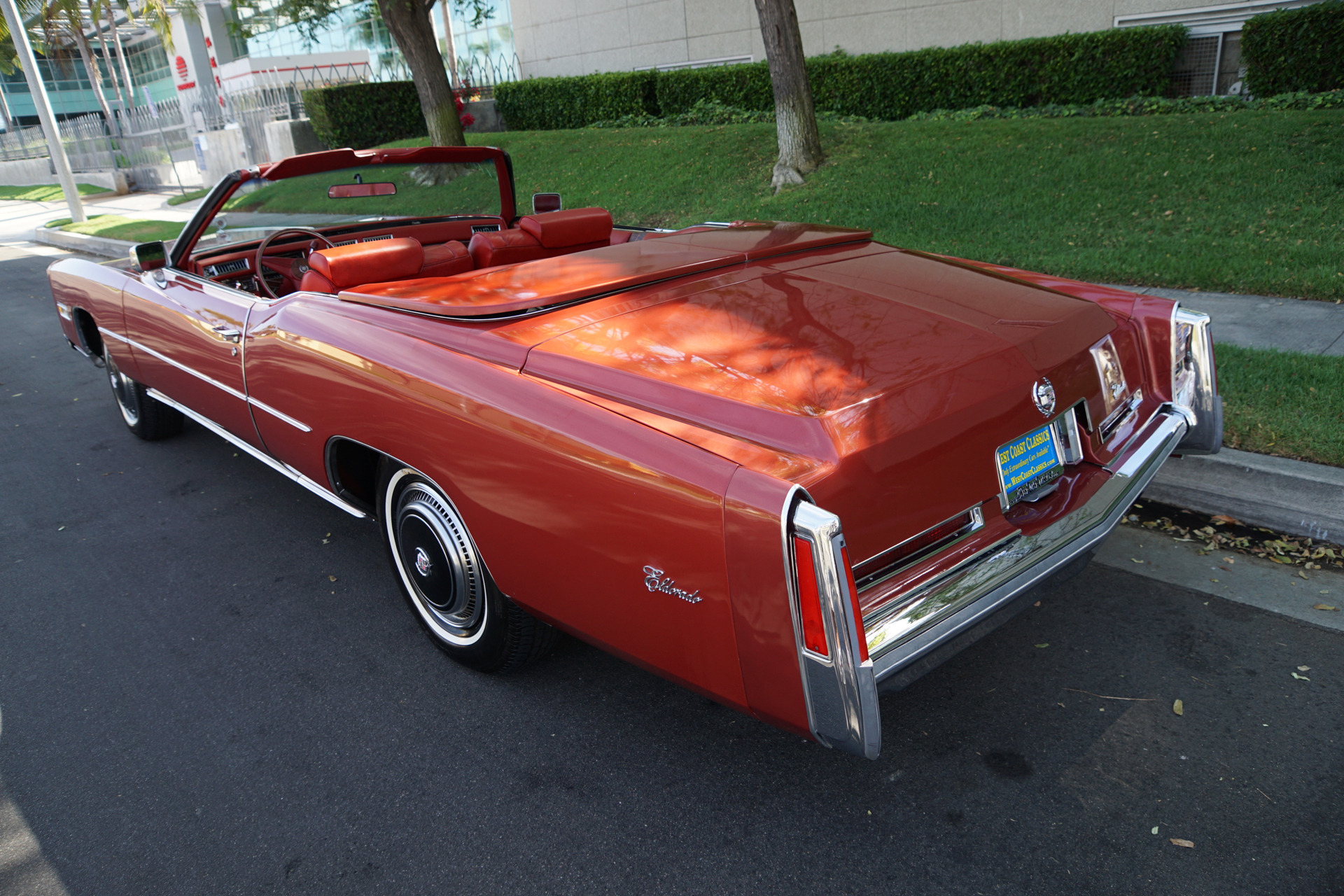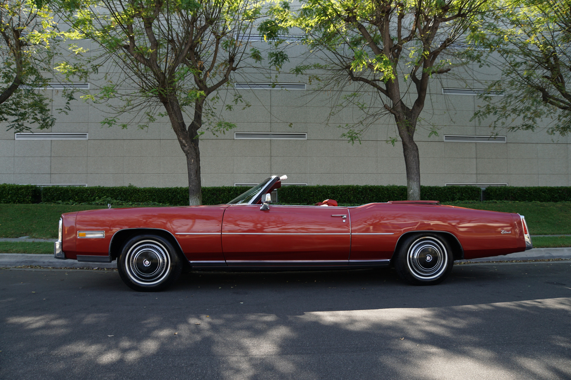 West Coast Classics are proud to present an absolutely stunning, exceptional and completely rust free example of this last year 1976 Cadillac Eldorado Convertible with all it's original factory specifications including it's original 500 c.i. V8 engine with an undocumented but as stated by it's previous original ownership and quite obvious 952 (Yes - Nine Hundred & Fifty Two!) original miles! The car's original factory options including power soft top, automatic climate control, soft ray glass, steel belted radial white wall tires, power door locks, leather upholstery, 6 way driver power seat adjuster, high energy ignition, digital clock, auto level control, automatic transmission, power steering, power windows, dual power brakes, 4 wheel disc brakes and factory installed options including tilt and telescope steering wheel, remote control trunk lock, carpeted floor mats, twilight sentinel, rear window defogger, cruise control, illuminated vanity mirror, illuminated entry system, automatic door locks and AM/FM radio with a power antenna and factory parade boot!