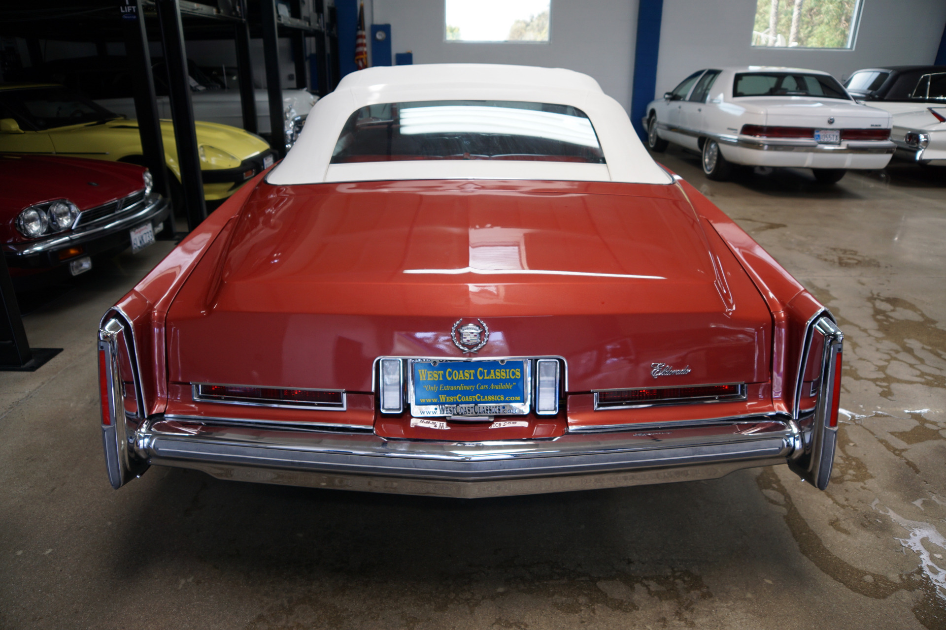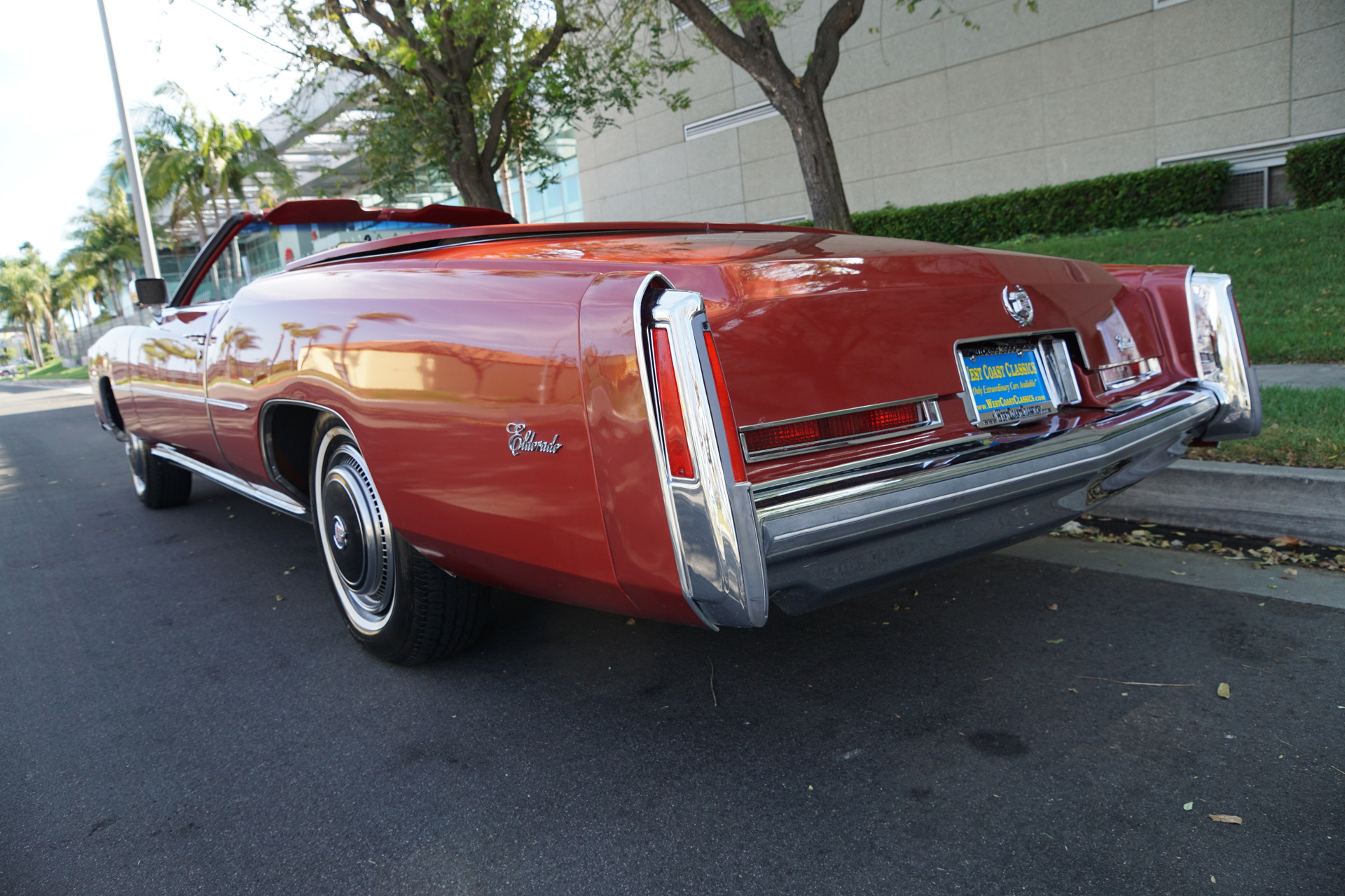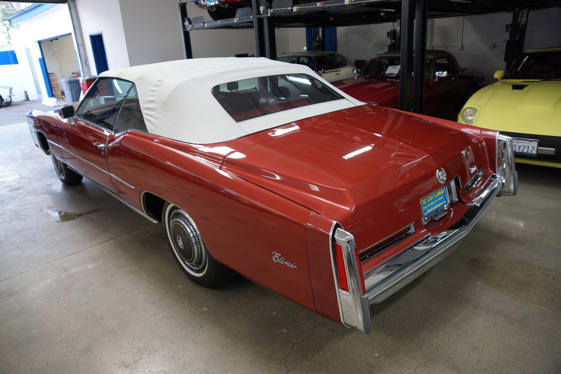 West Coast Classics are proud to present an absolutely stunning, exceptional and completely rust free example of this last year 1976 Cadillac Eldorado Convertible with all it's original factory specifications including it's original 500 c.i. V8 engine with an undocumented but as stated by it's previous original ownership and quite obvious 952 (Yes - Nine Hundred & Fifty Two!) original miles! The car's original factory options including power soft top, automatic climate control, soft ray glass, steel belted radial white wall tires, power door locks, leather upholstery, 6 way driver power seat adjuster, high energy ignition, digital clock, auto level control, automatic transmission, power steering, power windows, dual power brakes, 4 wheel disc brakes and factory installed options including tilt and telescope steering wheel, remote control trunk lock, carpeted floor mats, twilight sentinel, rear window defogger, cruise control, illuminated vanity mirror, illuminated entry system, automatic door locks and AM/FM radio with a power antenna and factory parade boot!