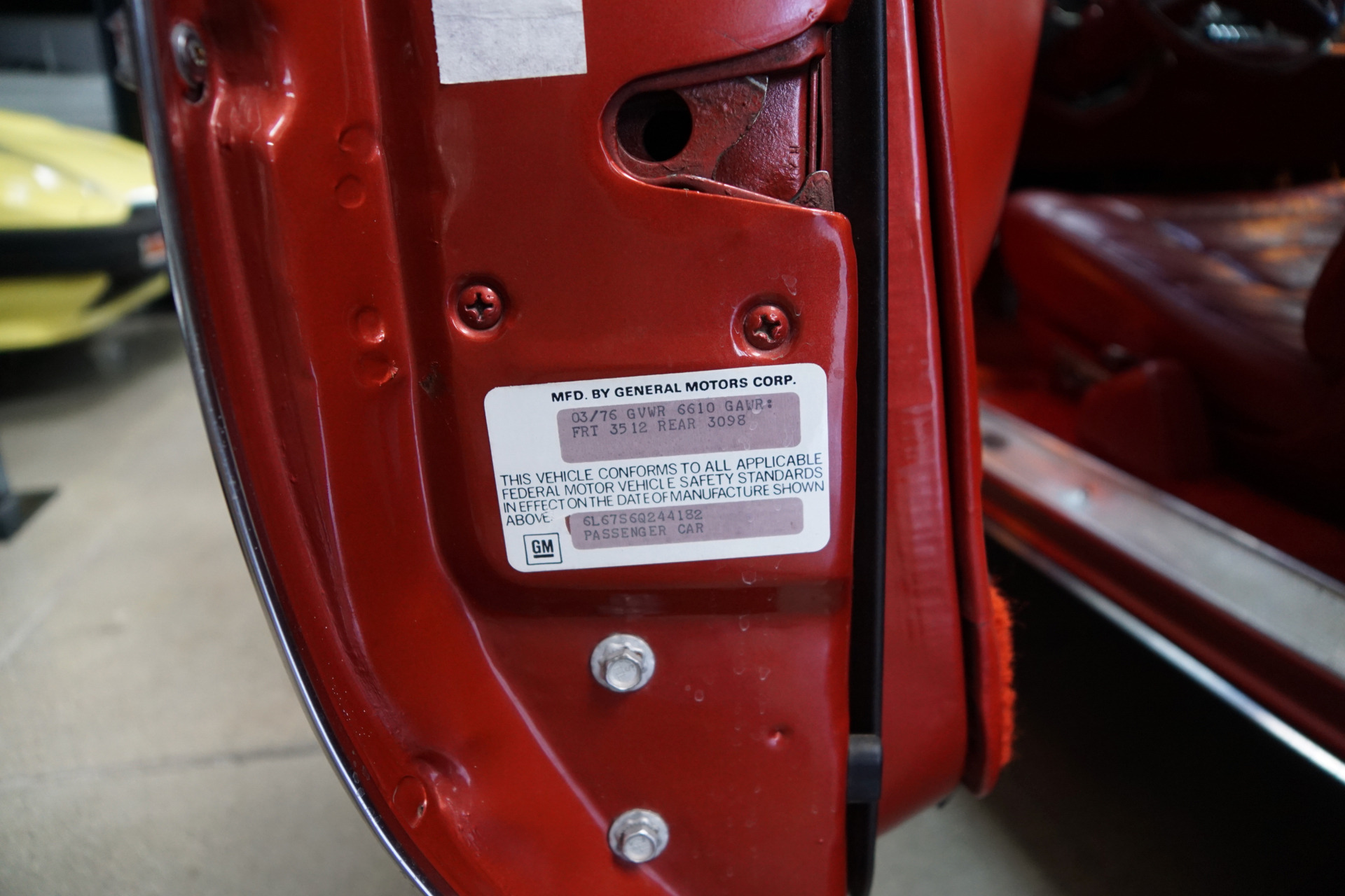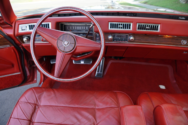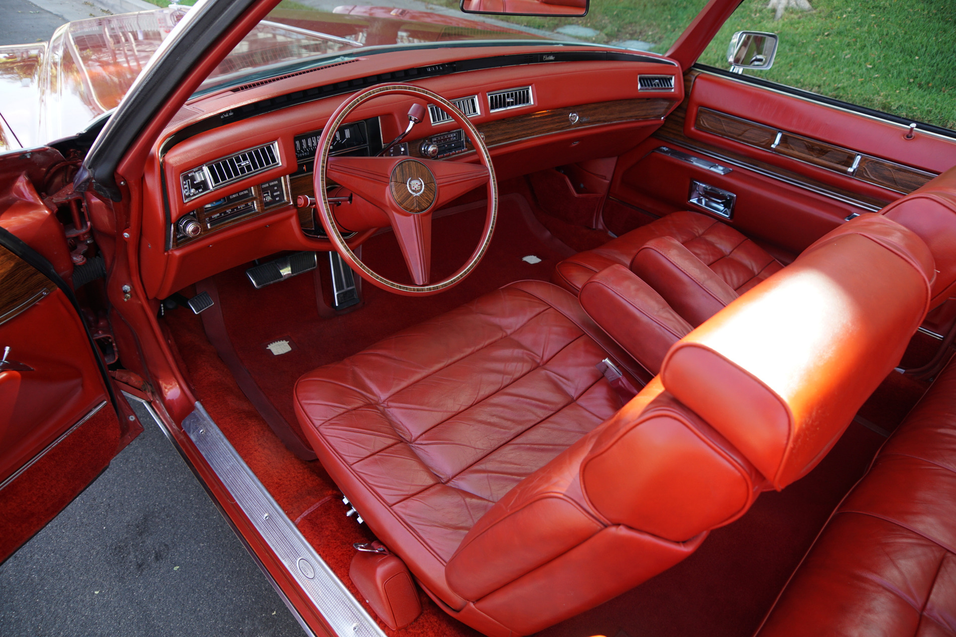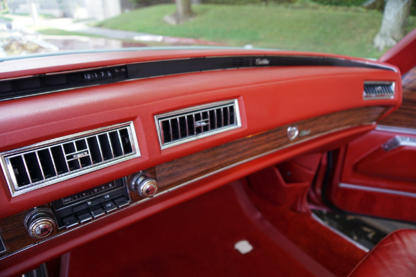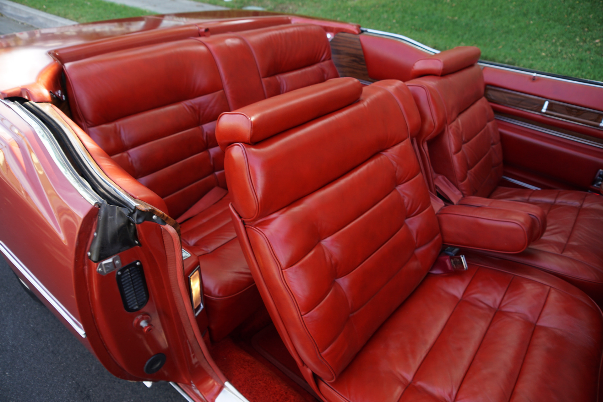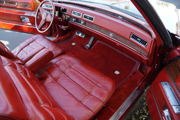 This particular example was recently purchased by us with the history of the car reported as being a one owner car since new which we subsequently verified with the car's original owners who confirmed that the car is indeed a genuine one owner car until sold to a broker/dealer last year in the original owner's hometown of Houston, Texas and a car which they had bought new at 'David Taylor Cadillac, Buick' of Houston, Texas and which was one of several Cadillac's they had owned with this particular car having been parked and garaged in their climate controlled facility since 1979! The car was indeed last registered in 1979 with it's original Texas plates showing the expired 1979 registration tags and the car is still titled in it's original Texas title in it's original owner's name! It is in absolutely pristine condition throughout with only 952 miles on the odometer and has obviously always been a garaged car without any accident damage or rust whatsoever! The whole car is completely rust, accident and damage free - the car is very striking in its original factory color 'Firethorn Metallic' (color code 36) paint with a gorgeous and matching all original 'Antique Dark Firethorn' leather color keyed (trim code 712) interior with matching original carpeting and and as new condition 'White' color soft top with a glass rear window of this last and most desirable year of this legendary classic Cadillac.