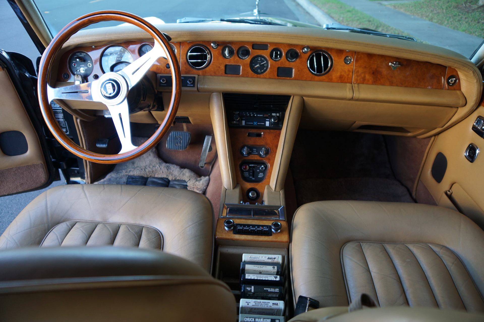 Still fitted with it's original factory rugs, tools and 'Blaupunkt' AM FM with in dash 'Pioneer' 8 track cassette stereo complete with a collection of Reggie's original 8 track cassettes. The car's second CA owner was a car enthusiast and collector who kept the car at his well known and respected southern California vineyard. Obviously always garaged and meticulously kept since new with only 18K original miles now and finished in the simply stunning 'glass like' and flawless beautiful original 'Mason's Black' color paint with it's all original 'Beige' color 'Connolly' leather hides interior and with color matching Rolls Royce hubcaps!