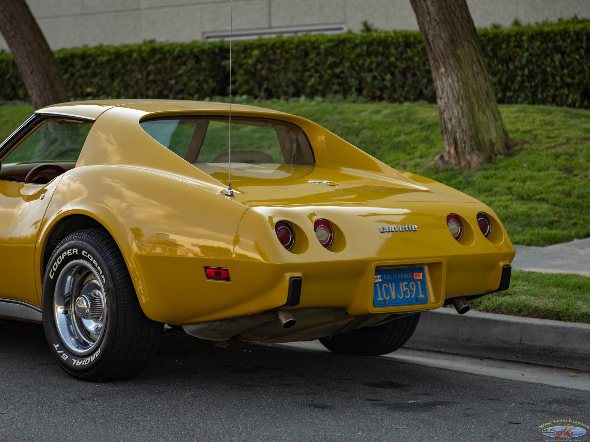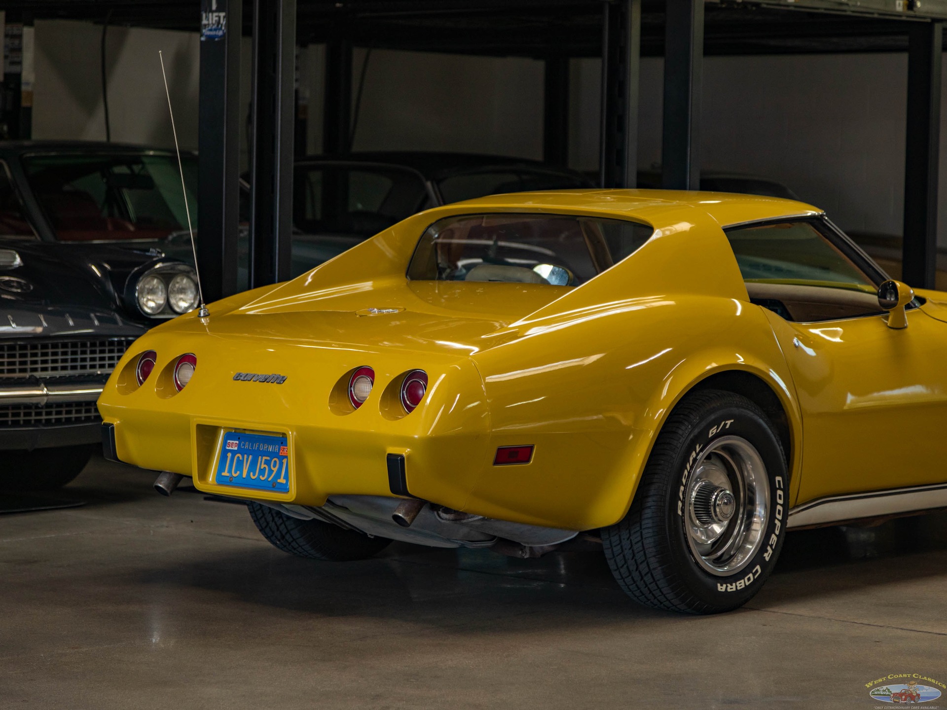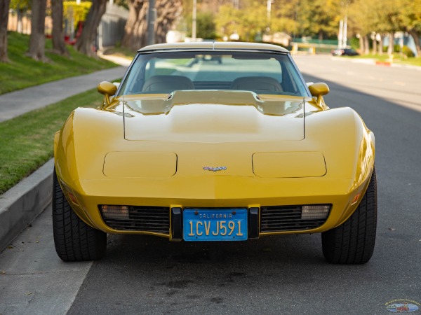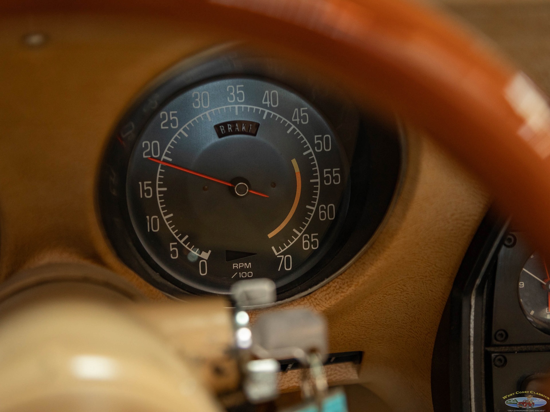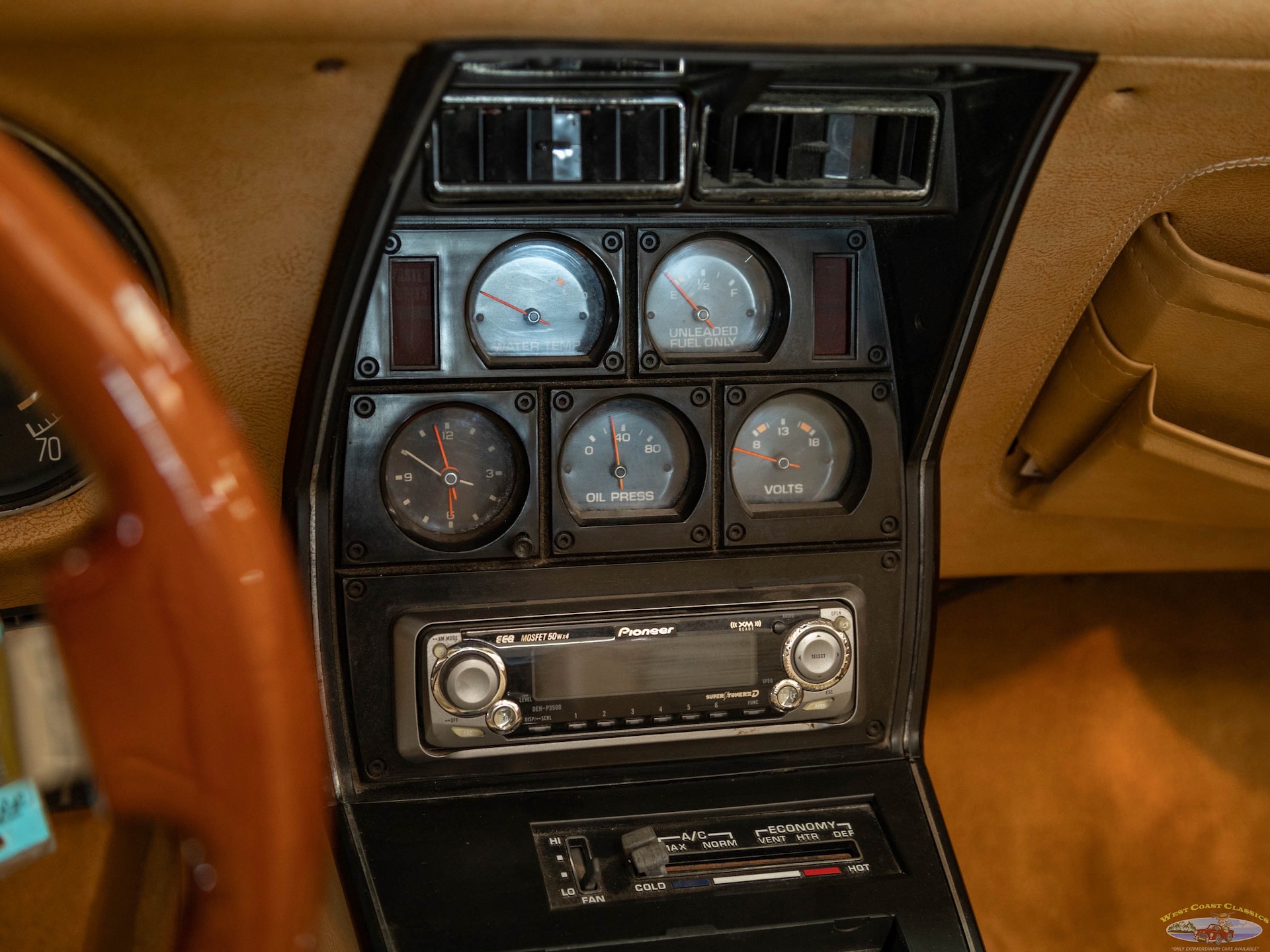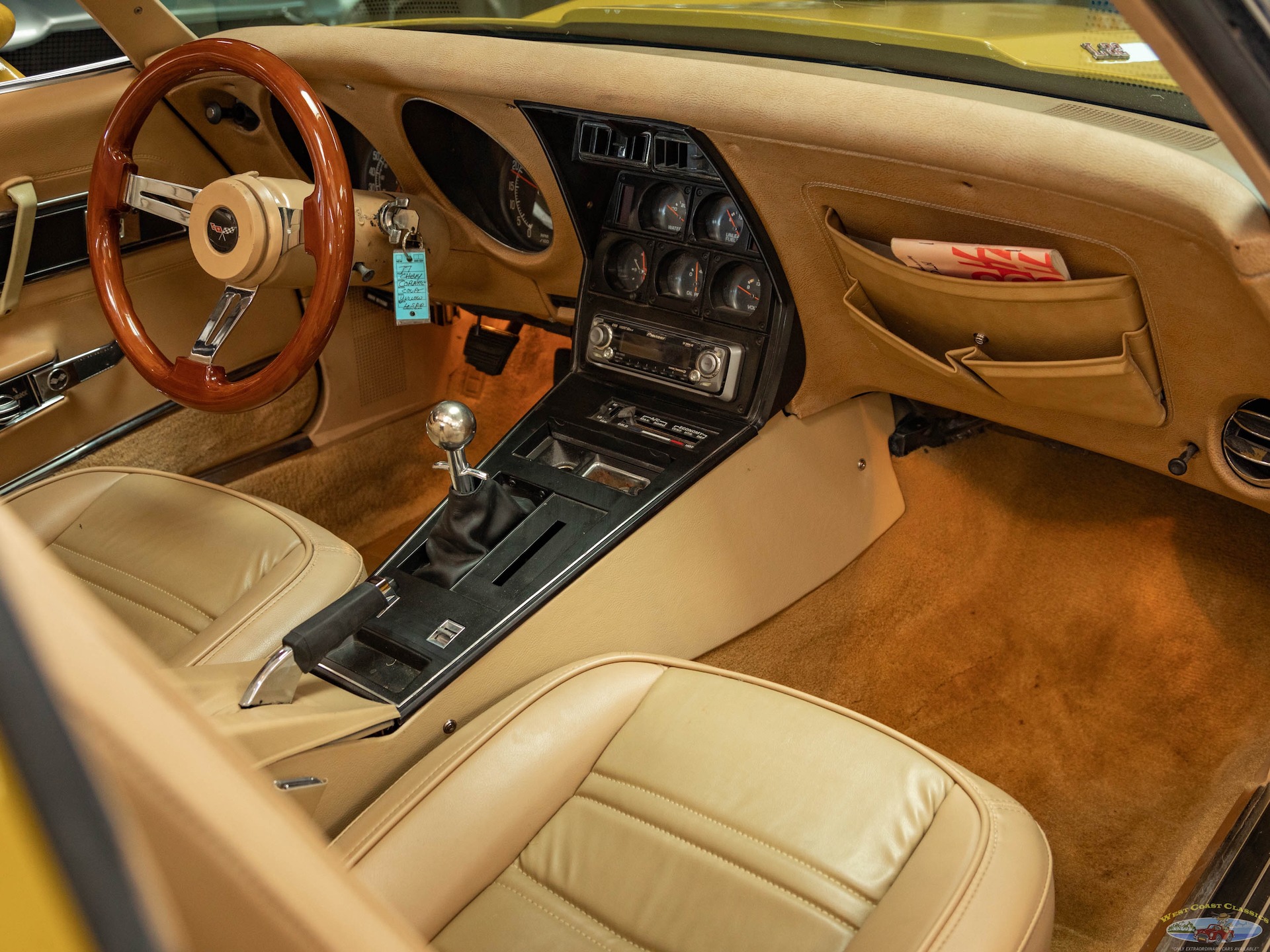 After Corvette's various legendary big block 396 with 425HP & the various 427 engines of the sixties, including the limited production L88 and then eventually the LS6 454 in 1971, Chevrolet continued production into the early seventies with the big block engine but by 1975 it was dropped from the Corvette range, as along with the rest of the industry, de-tuning to meet increasingly strict emissions testing regulations legislated out of existence virtually every American high performance car by the mid-seventies, with the Corvette alone remaining the almost sole choice for the muscle car enthusiasts. And so the Corvette continued with a pair of small block V8 engines, the standard 350 V8 and the obviously more desirable and upgraded high performance L82 with performance oriented rear axle ratios. With its strong torque output and relatively light weight, this Corvette still provided strong performance and thrilling driving dynamics and equipped with this L82 option engine, the Corvette was the fastest car in the U.S until 1979, rivaled only by the limited numbers of the Pontiac 400 Trans Am 6.6L of the same year.