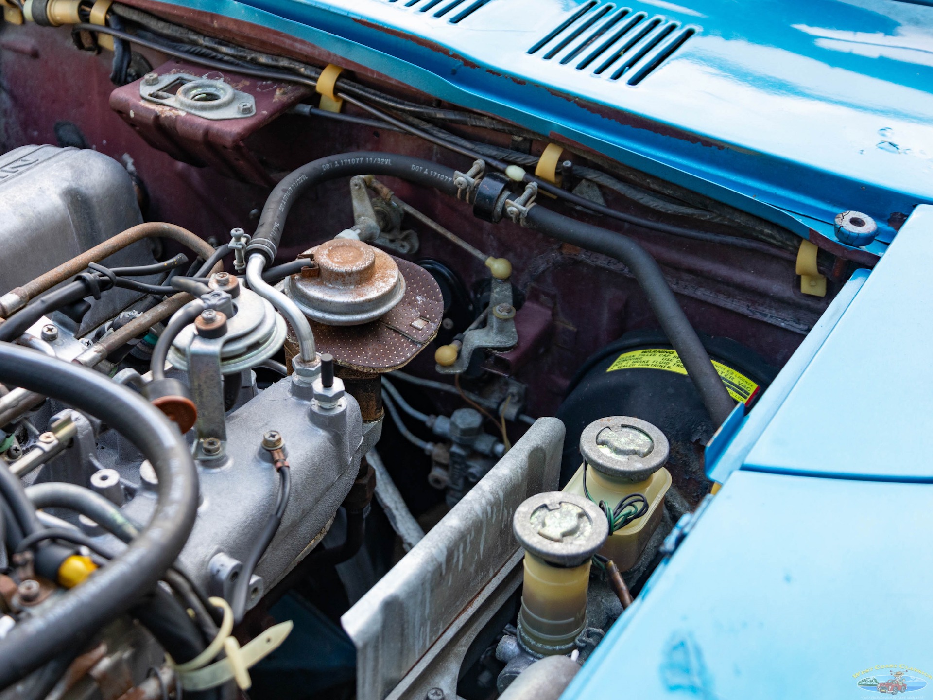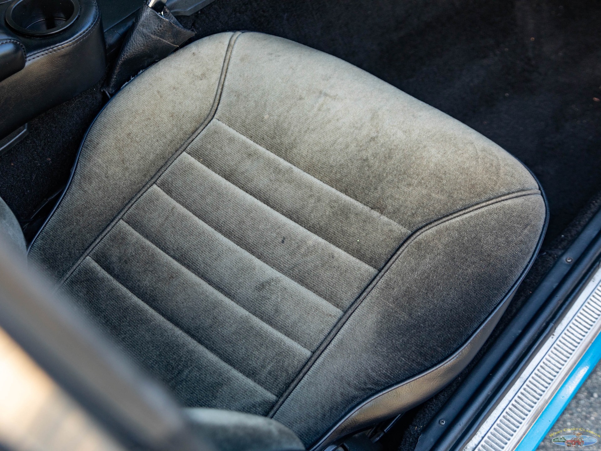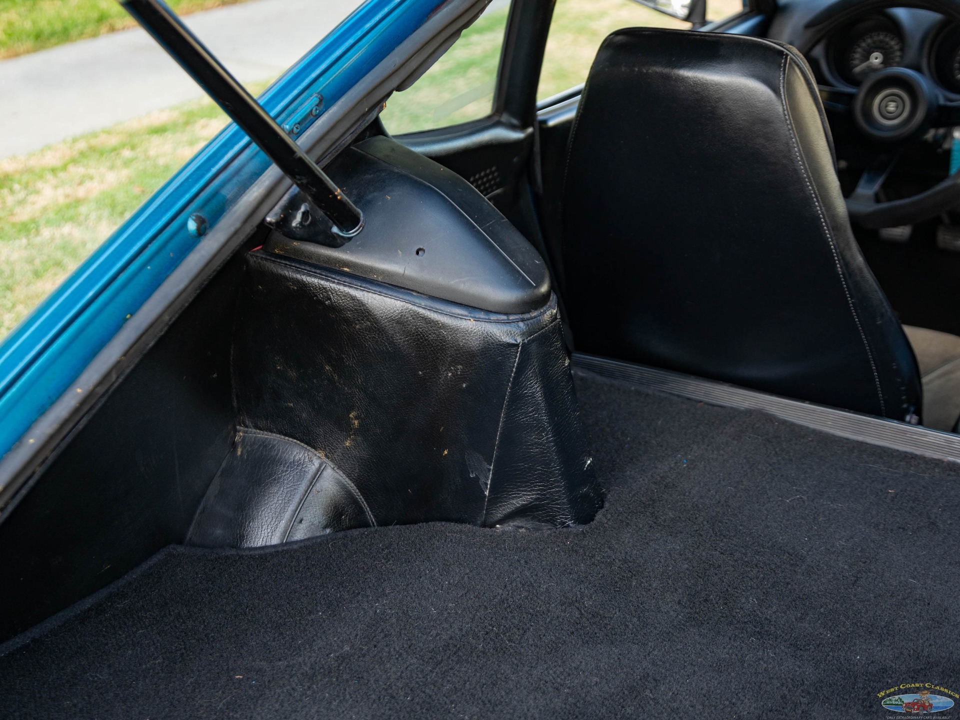 This is a beautiful stock example with it's original engine and with all of it's original factory specifications and options intact except for one repaint in Blue from its original Burgundy factory color paint and with its original black bucket seat interior!
