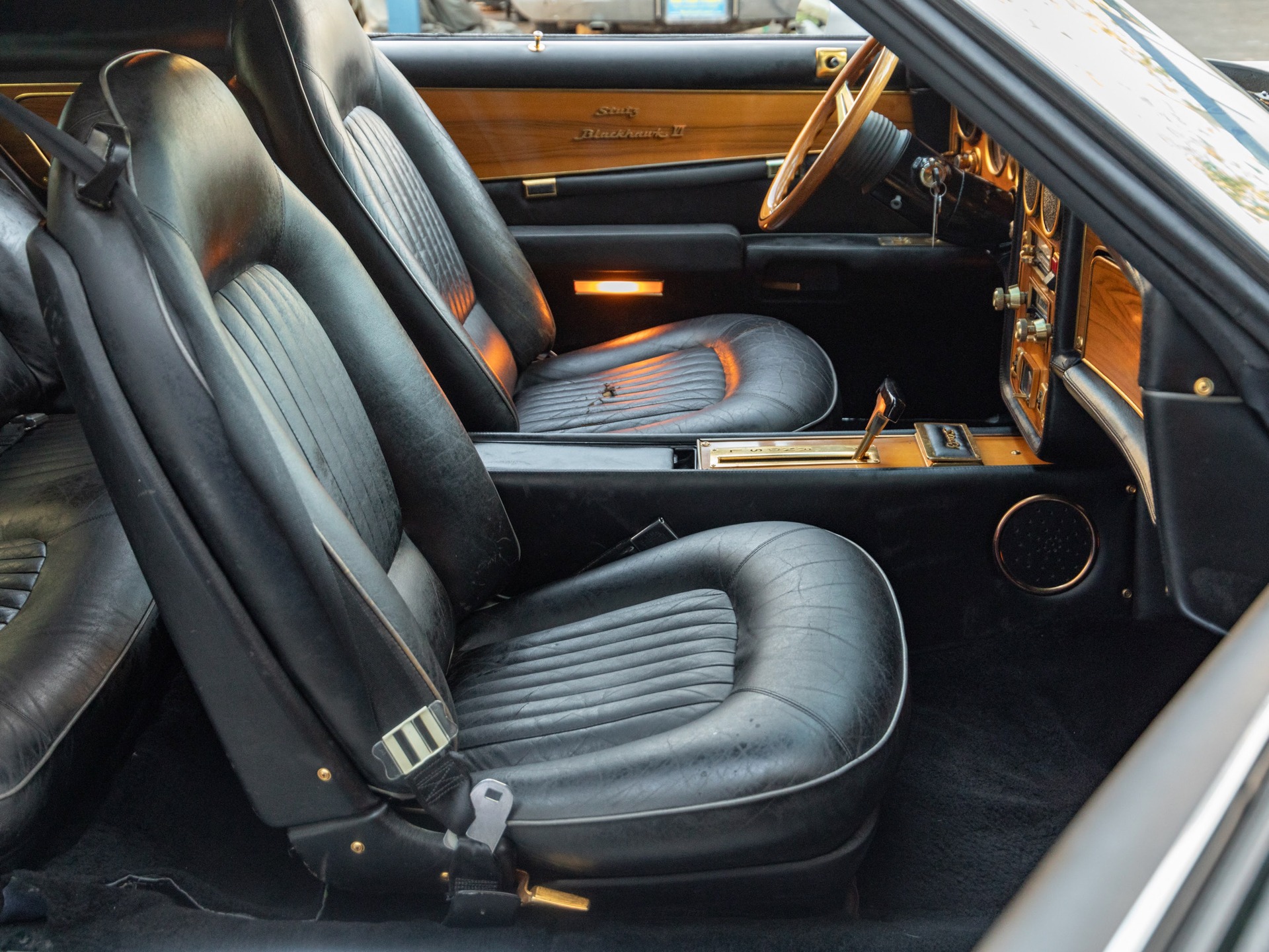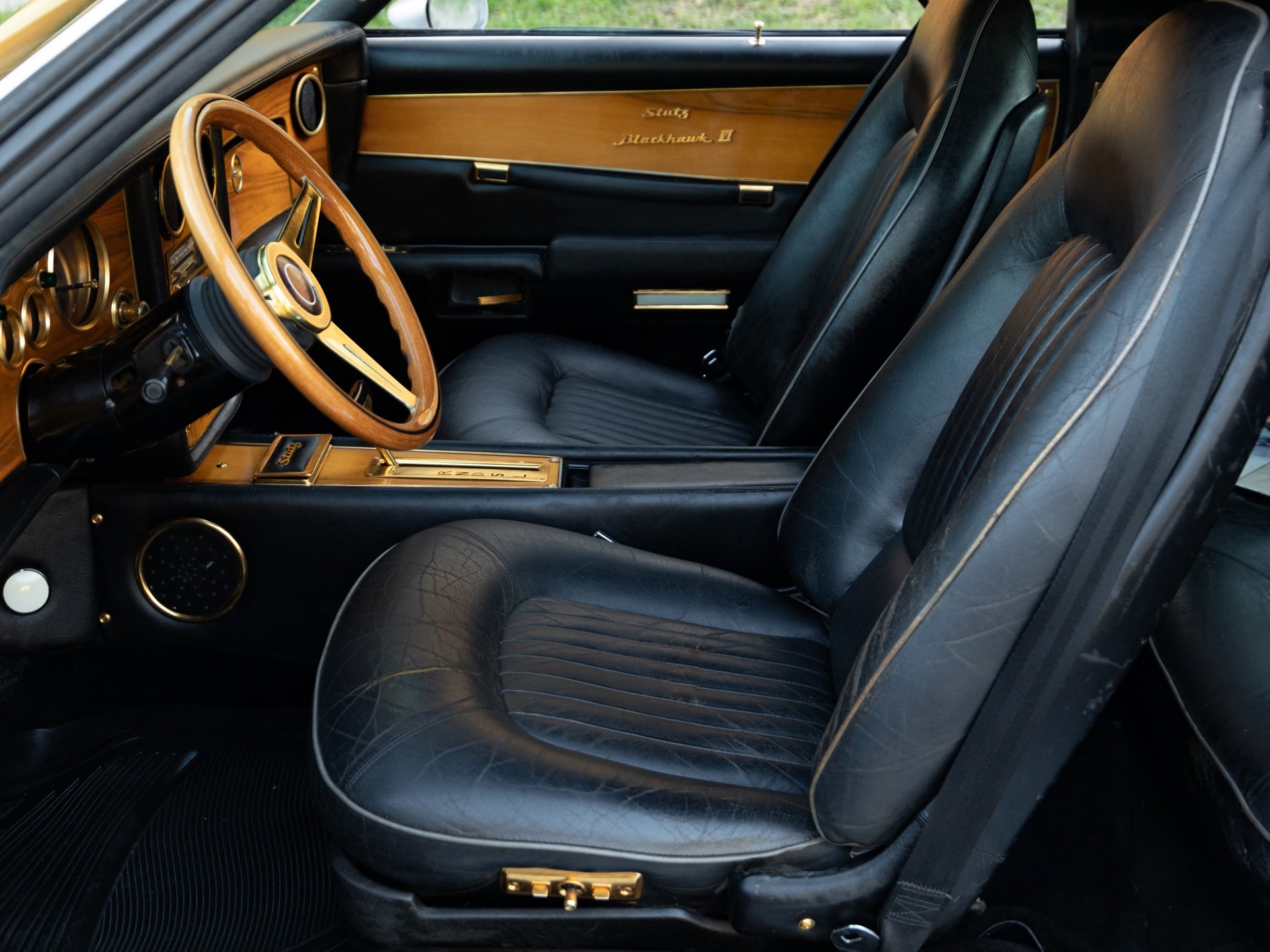 West Coast Classics are proud to present an exceptional example of this 1978 Stutz Blackhawk VI with 47K original miles in a most striking 'Silver' over Black leather color combination. The Stutz Blackhawk is an American ultra-luxury car manufactured from 1971 through 1987. The car has power steering, power brakes, air conditioning, AM/FM stereo with an original 8 track cassette, tilt steering, bucket seats and console, tachometer and gauges, Connolly leather, power windows, power door locks, power seats etc. This 1978 Stutz Blackhawk VI is one of approximately 600 Blackhawks produced between 1971 and 1987 and is finished in 'Silver' color paint with a Black Connolly leather interior with Silver piping and the power is provided by a 403 ci General Motors V8 paired with a TH400 three-speed automatic transmission. Radially laced 16 chrome wire wheels feature winged knockoffs and are wrapped in whitewall tires. A matching spare is mounted in the trunk and protrudes through the rear bodywork. Braking is handled by front discs and rear drums. The trunk is lined with mink fur and houses wheel knock-off hammers, tools, and a jack.