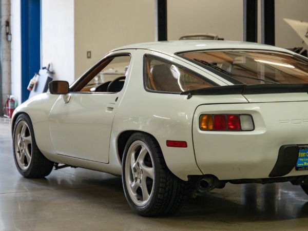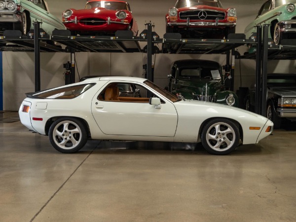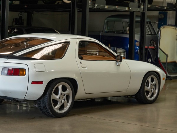 The original 928 is most easily recognized by the absence of a rear spoiler which gives the car a sleeker look as the trunk sits flush with the body with signature Lamborghini like 16" five hole 'telephone dial' cast alloy wheels coming standard from the factory on the 5 speed manuals but with only 15" alloys on the 3 speed automatic models. Power came from Porsche's first ever eight cylinder all alloy water cooled 240bhp engine, a 4.5 liter Bosch fuel injected V8.
