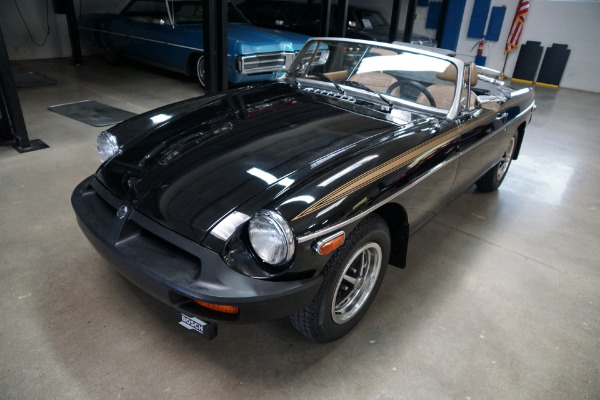 The final MGBs to be produced for 1980 were named Limited Edition, of which the first examples were shipped into Canada in late 1979. The Limited Edition cars for the American market were shipped to the U.S. in October of that year and came with one fan instead of two. All of these final MGBs were finished in black with gunmetal-grey side stripes along the body and a front spoiler below the polyurethane nose. Additionally, these cars came with five-spoke alloy wheels, manufactured by GKN with MG hub center appliqus, special body striping and subtle interior upgrades and a luggage rack. A Limited Edition dash plaque was installed on the glovebox as well. Of all the rubber bumper cars, this is the most collectible model and the one to look for. The 1980 MGB Limited Edition was probably the best MGB ever made. The Limited Edition (Made for the USA) was shipped to the USA in 10/79 (with one fan, rather than two) and they introduced it with the Champagne interior. The manufacture of all MGs ended in 10/1980.