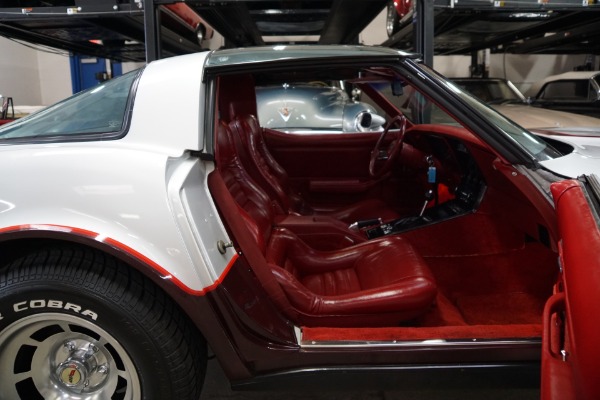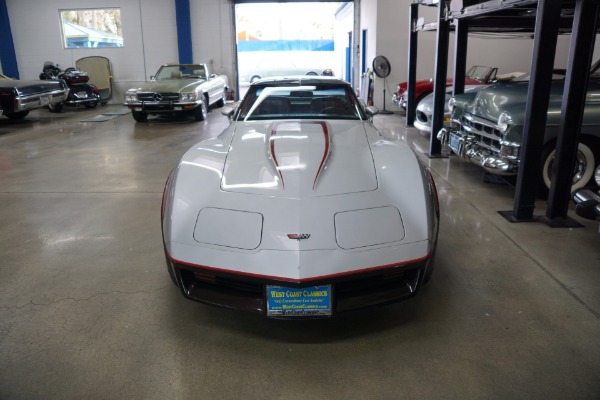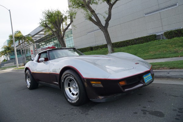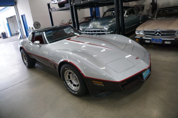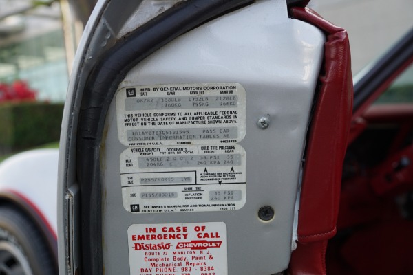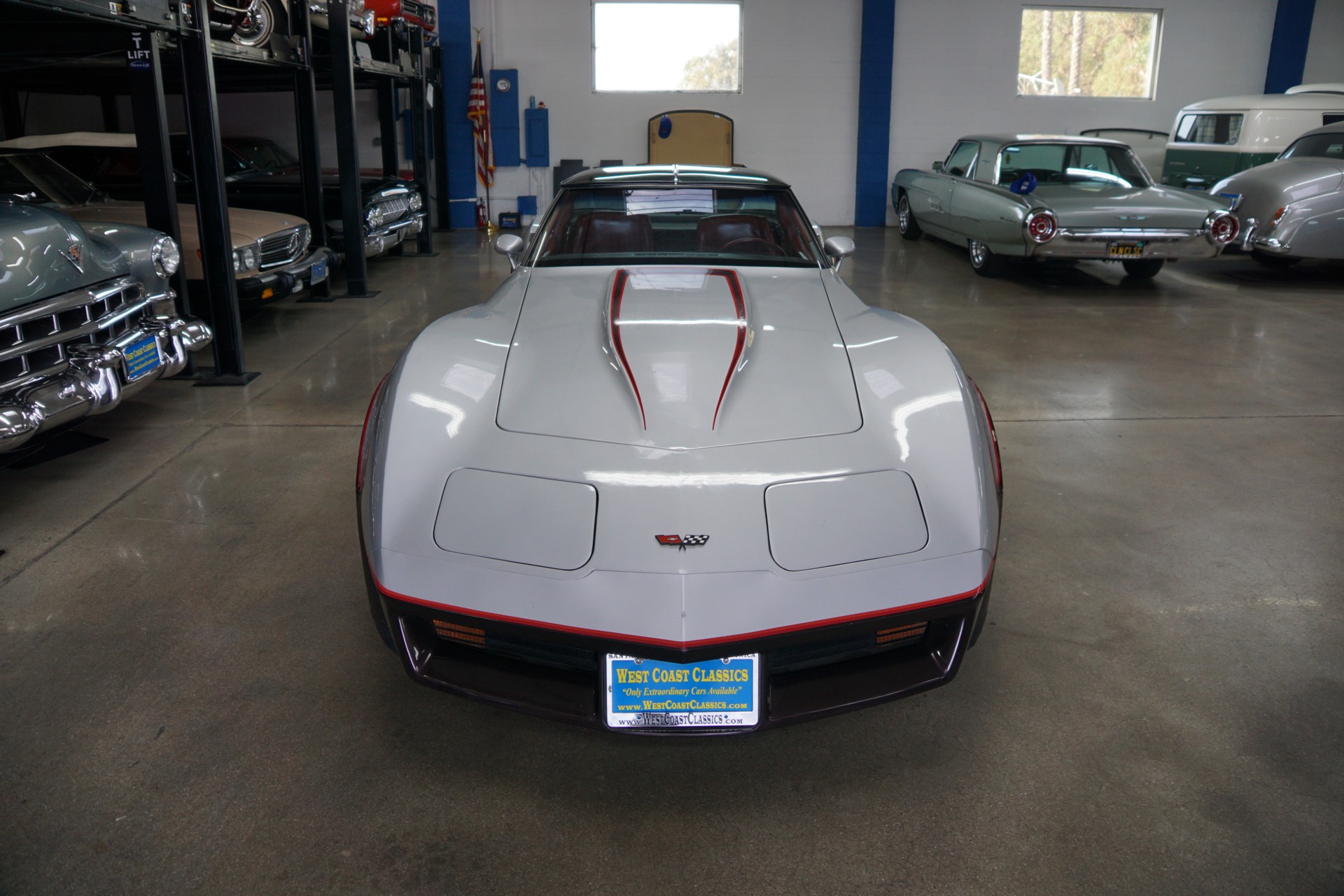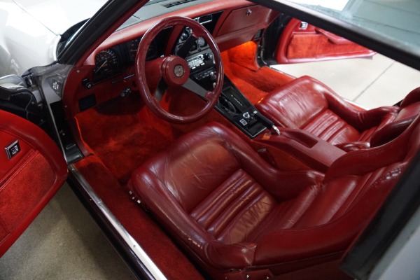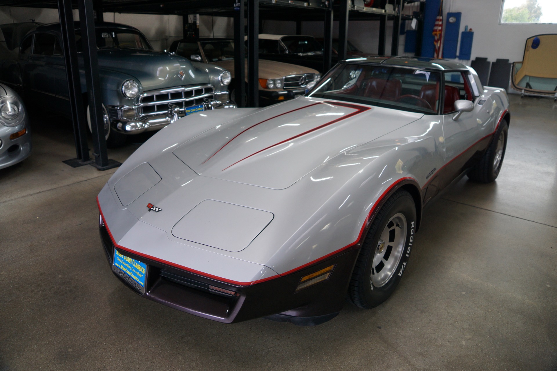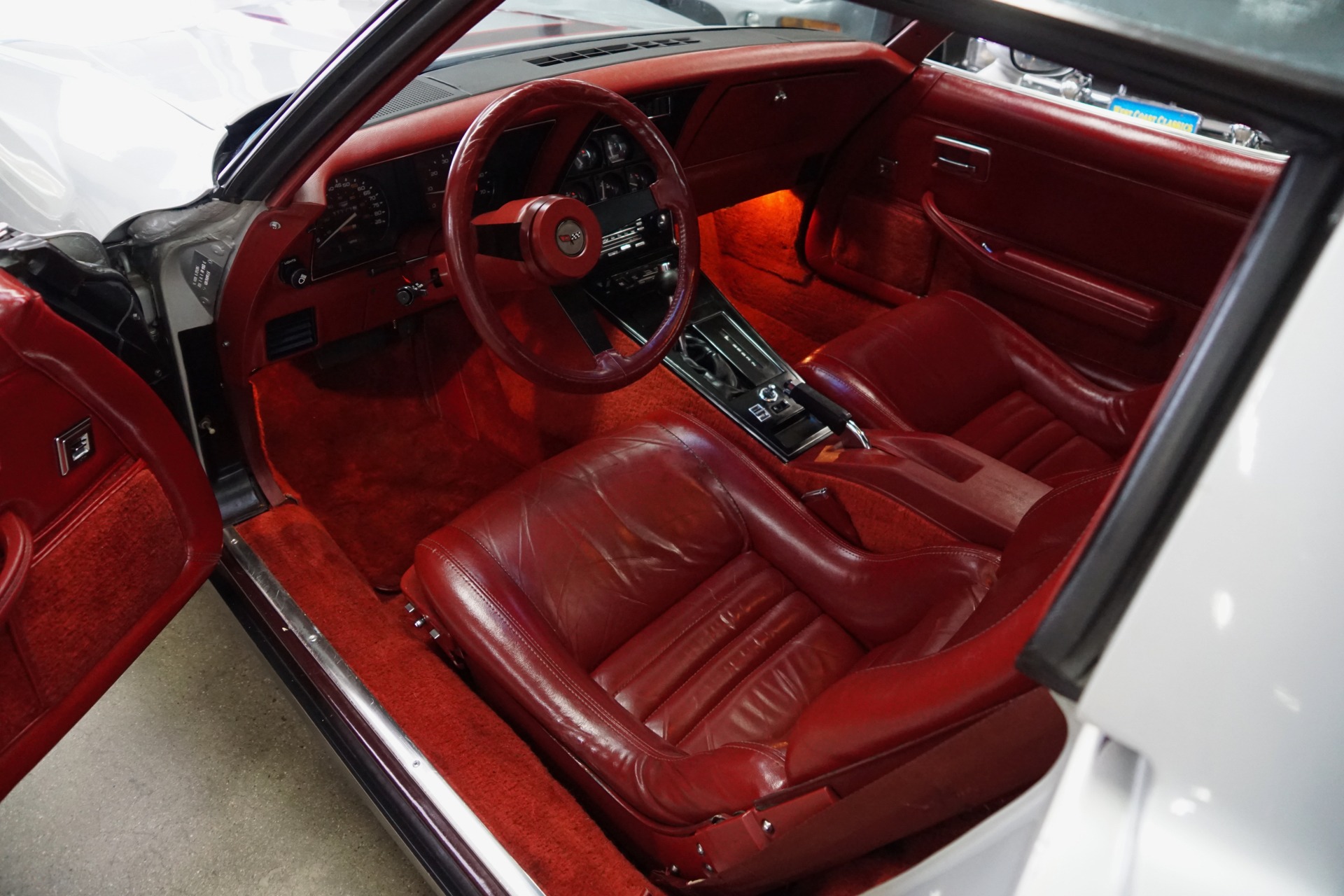 West Coast Classics are proud to present an absolutely exceptional example of this 1982 Chevrolet Corvette the last year of the 'Stingray Style' and end of the Mako Shark era Chevrolet Corvette 5.7L V8 coupe in it's all original factory and very striking special factory ordered color two-tone 'Silver Metallic' (Color code 13) paint with original 'Red Sport Stripes' (code 77A) and 'Dark Claret Accents' (99M) all original body panels with no signs of any rust or bodywork, original 'Dark Red Leather' (Trim Code 742) color leather bucket seats upholstery and interior trim (741), original 5.7L V8 engine and original factory options including; frameless glass hatchback with manual release button, accent pinstriping, matching color hand-sewn leather wrapped tilt/telescoping steering wheel and horn cap, luxury carpeting, automatic transmission with O/D, power steering, power windows, power 4 wheel disc brakes, air conditioning, computer command control, heavy duty battery, tilt/telescopic steering wheel, leather wrapped steering wheel, tinted glass, dual horns, dual padded sunshades, and fully loaded with added factory options of: