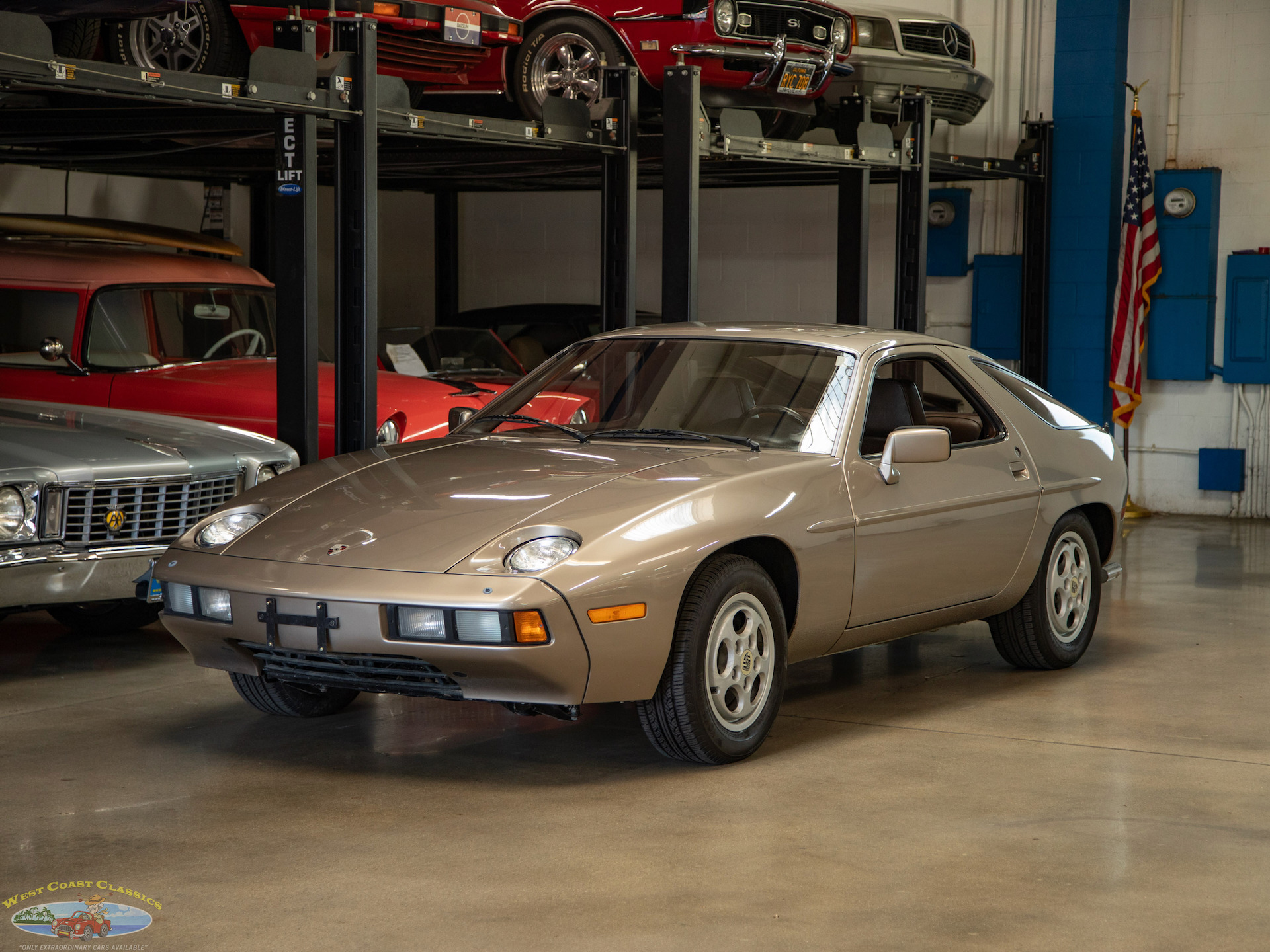 West Coast Classics are proud to present an absolutely exceptional example of this very rare 1982 Porsche 928 4.4L V8 230HP 5 speed manual Coupe! Finished in the desirable and beautiful color combination of its 'Platinum Metallic', a light Champagne Gold color metallic paint that appears Gold in certain light matched with its original 'Dark Brown' color leather seats interior!
