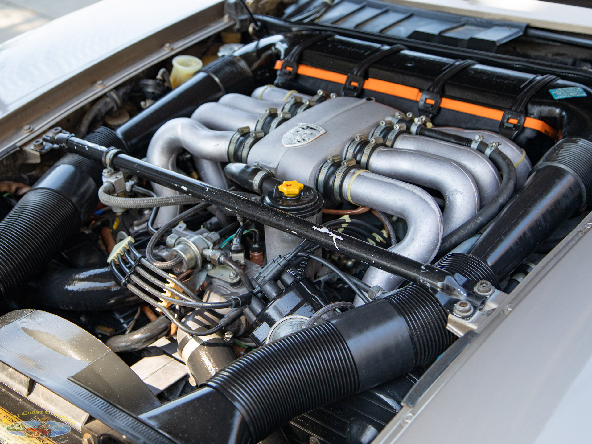 The original 928 is most easily recognized by the absence of a rear spoiler which gives the car a sleeker look as the trunk sits flush with the body with signature Lamborghini like 16" five hole 'telephone dial' cast alloy wheels coming standard from the factory on the 5 speed manuals but with only 15" alloys on the 3 speed automatic models. Power came from Porsche's first ever eight cylinder all alloy water cooled 240bhp engine, a 4.5 liter Bosch fuel injected V8.
