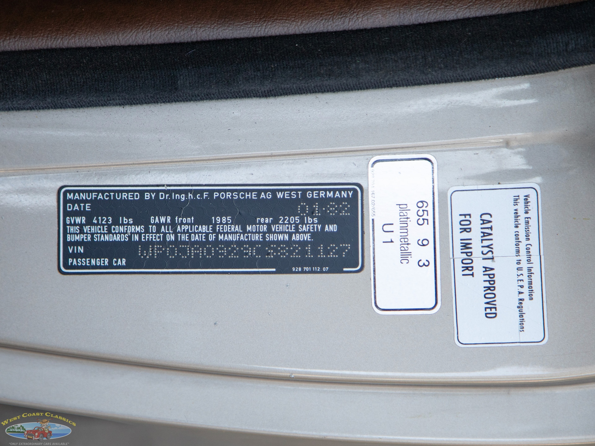 The original factory 'Platinum Metallic' color paint is in very good condition as is the all original 'Dark Brown' leather interior and beautiful original factory carpets. The car drives exactly like a well maintained and serviced Porsche should and must be driven to be fully appreciated and seen to be believed! The engine is extremely strong with no oil leaks, the transmission is very smooth and precise in shifting and the temperature always remains cool.