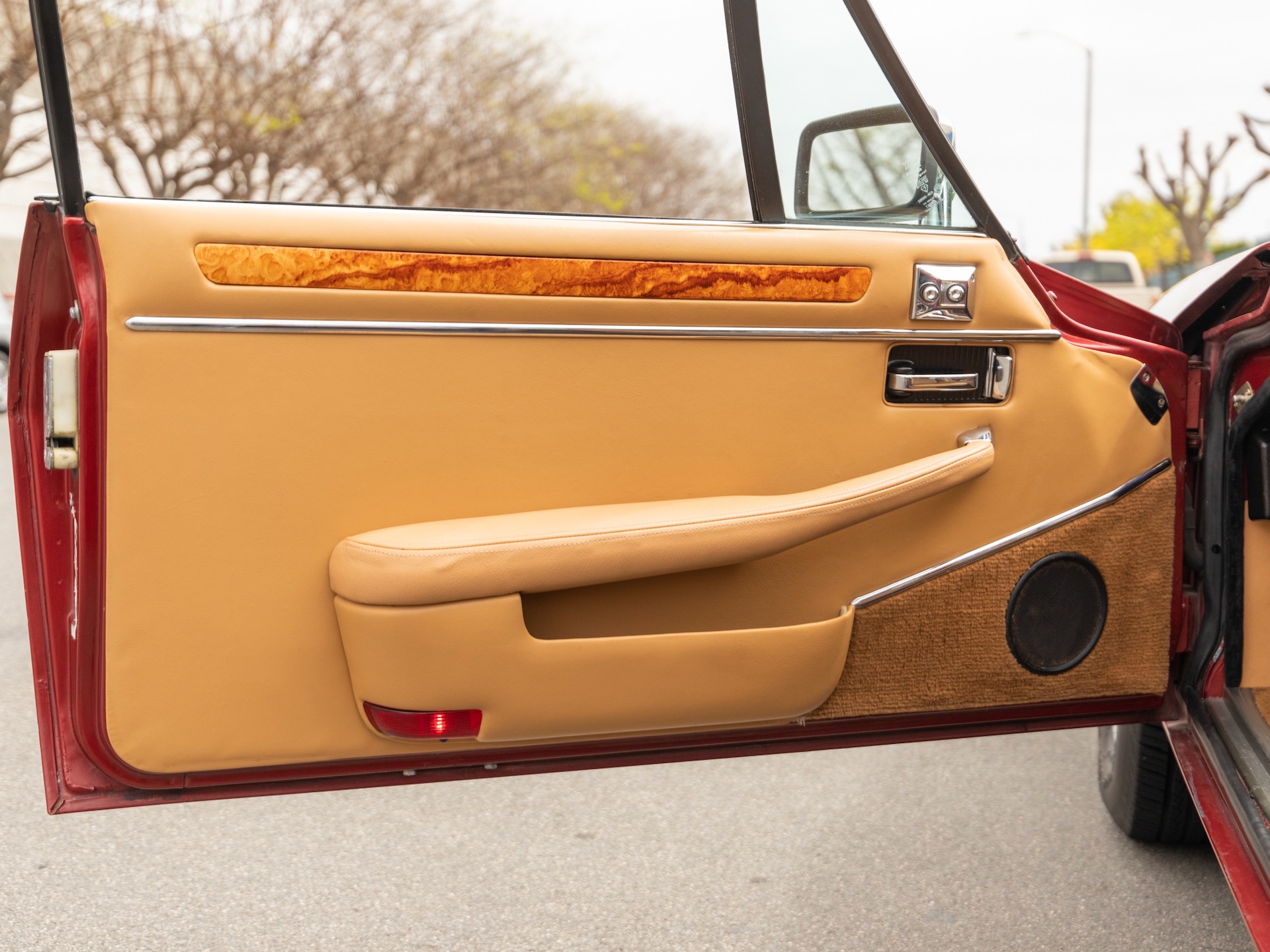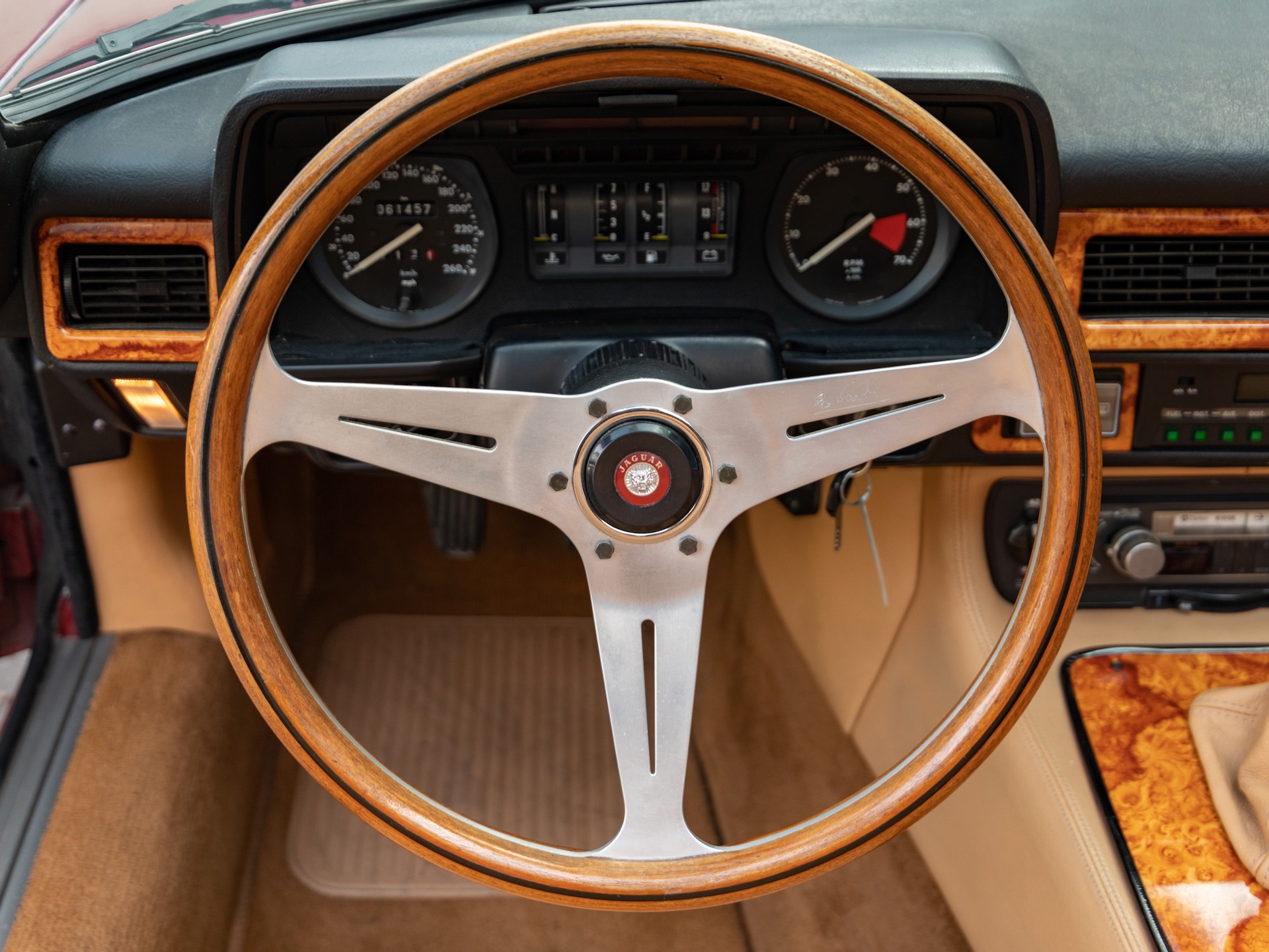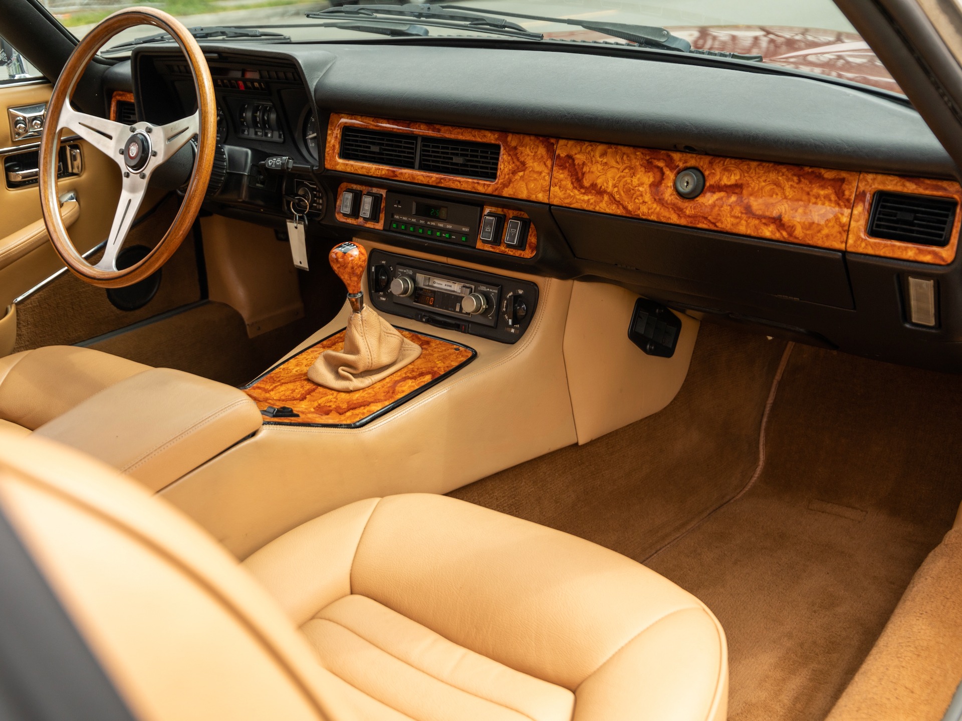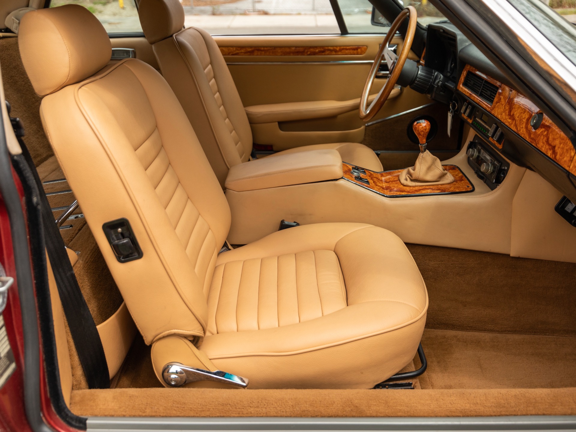 Obviously always garaged with absolutely no rust and no accidents, owned by only one obviously very careful and mature owners since new - never abused, babied all the way! The original factory and simply stunning 'Cranberry Red' color paint is in truly excellent condition as is the original 'Biscuit' color leather seats interior, which is in as outstanding condition as the exterior, with virtually no signs of any wear with the door panels, headliner and the carpets also virtually flawless throughout. The cars original spare wheel is unused and has never left its trunk compartment and the car boasts its Jaguar Heritage Trust Certificate confirming its unique and rare heritage and also all its original factory options and accessories including its tool box and Jaguar umbrella.