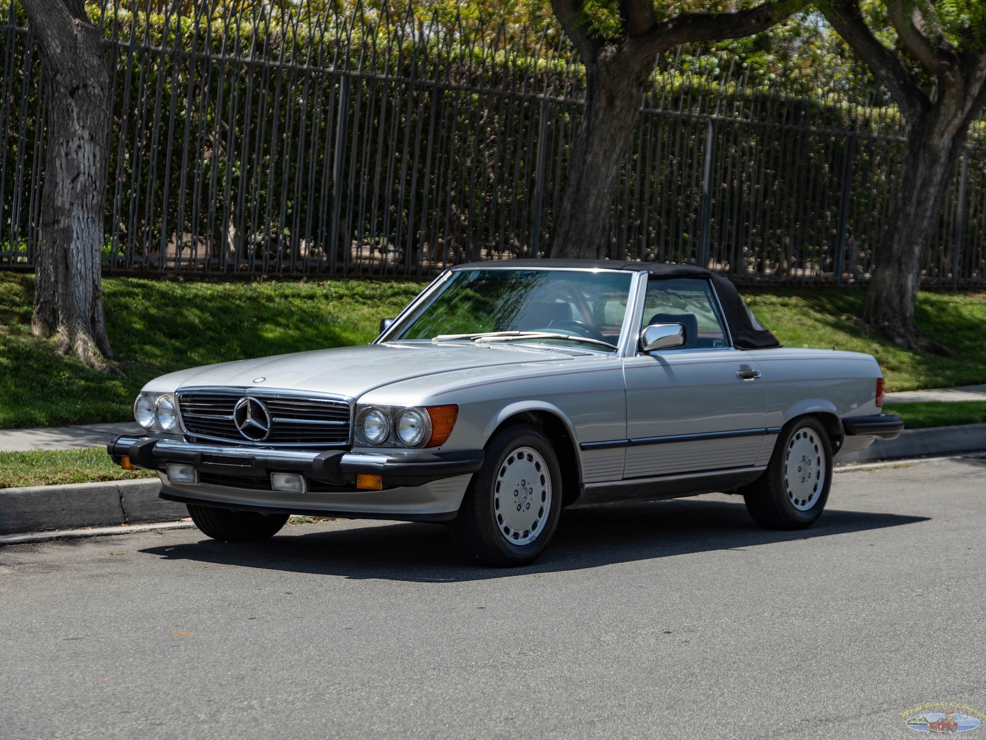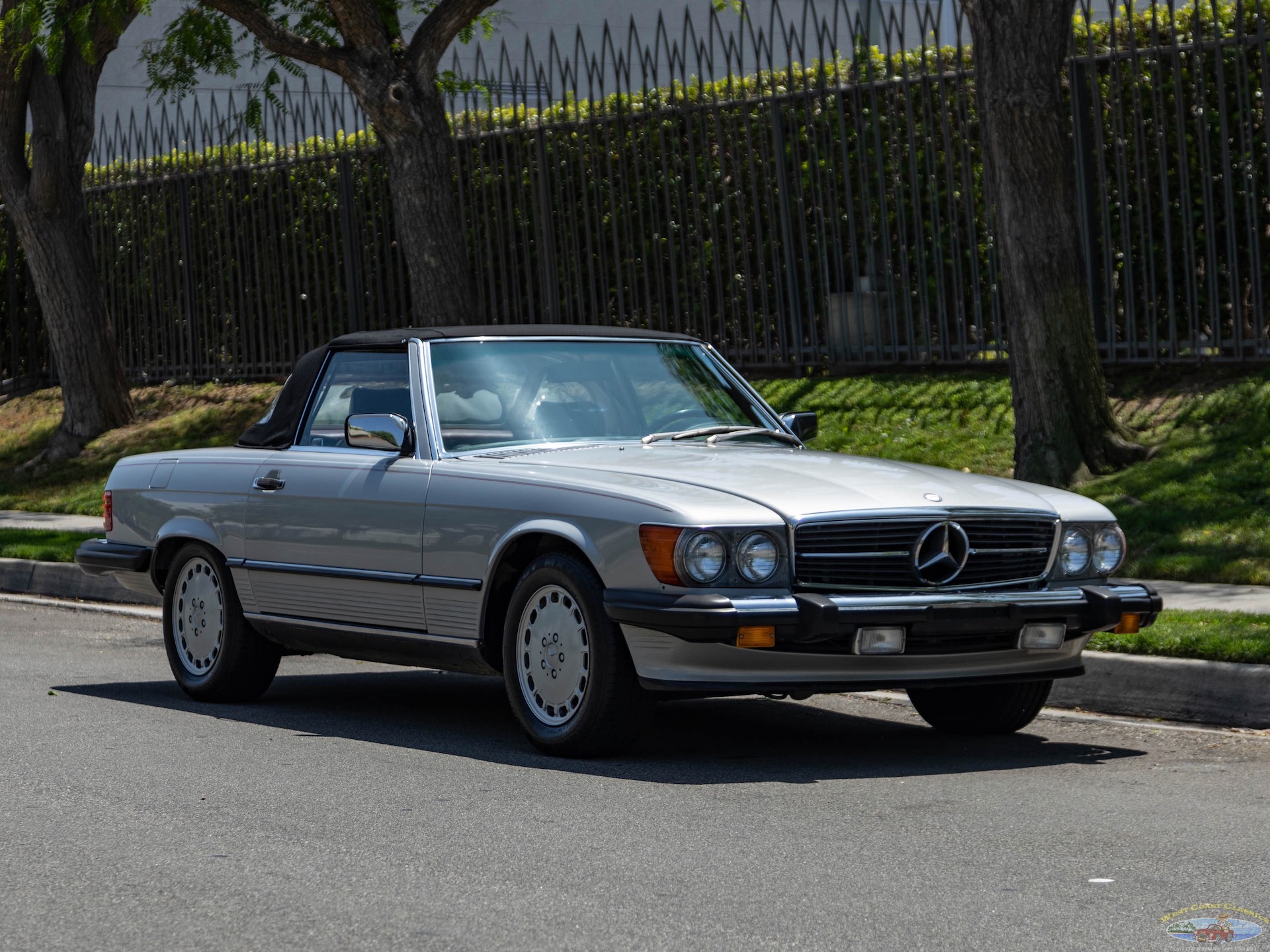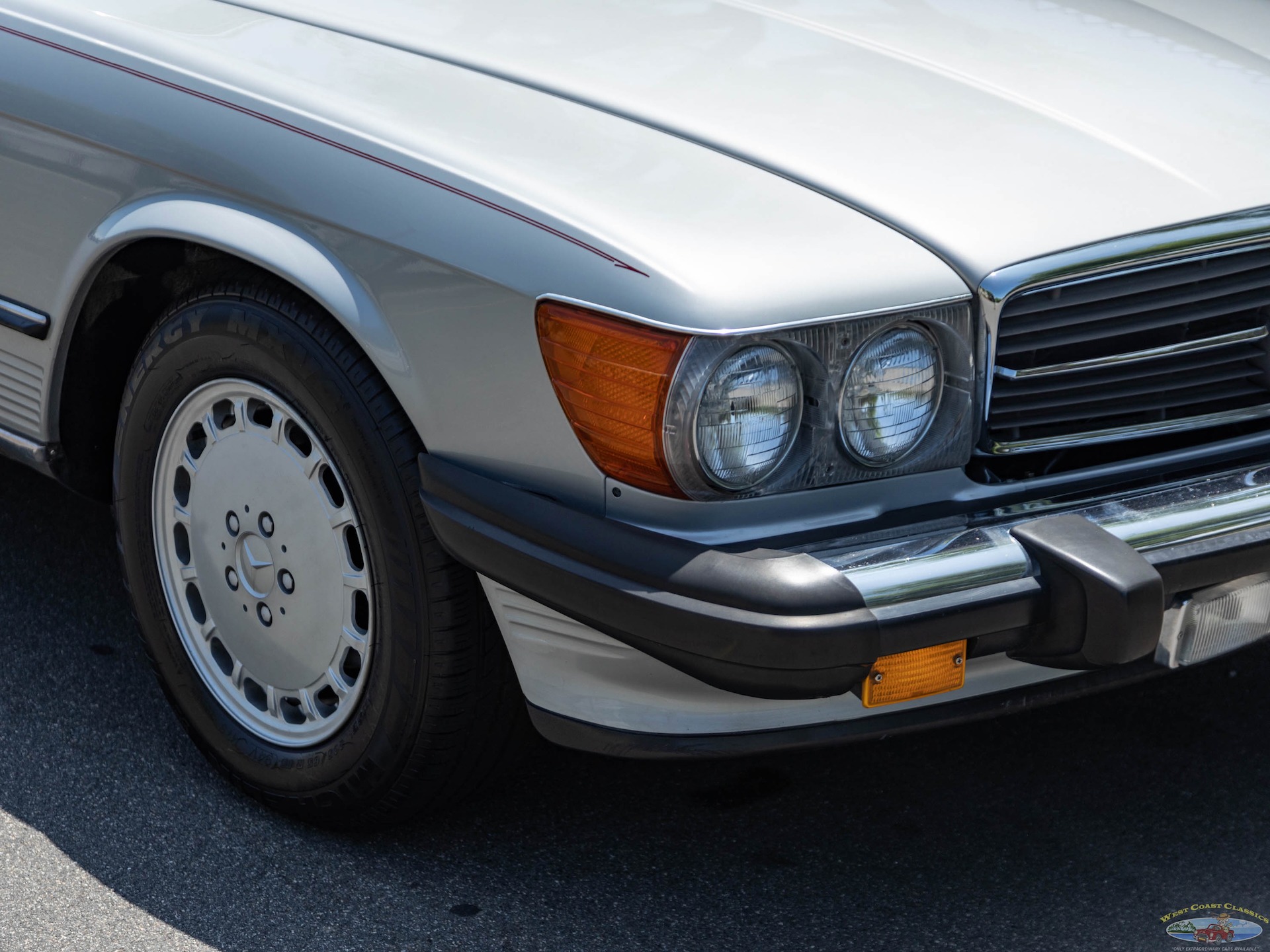 West Coast Classics are proud to present an absolutely exceptional example of this all original 1987 Mercedes-Benz 560SL roadster in its highly desirable and striking original factory 'Astral Silver Metallic' (color code 735) paint with a gorgeous 'Burgundy' (trim code 277) leather interior, its original and hardly used original 'Black' German (code 740) folding canvas soft top, factory alloy wheels, matching factory hard top and only 38K original and actual miles! Quite simply, if you want to own one of the very best examples of a 560SL anywhere, you've found it here!